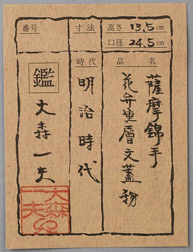 出展:薩摩錦手逸品展1997年5月29日~6月3日 丸栄スカイル