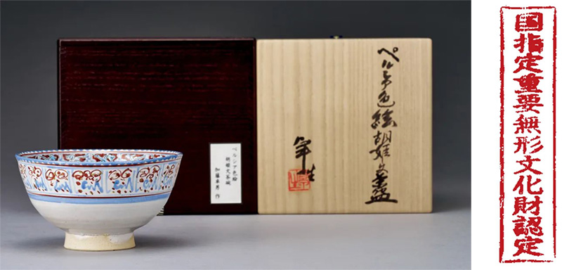 箱書(箱款):ペルシャ色絵胡姫紋茶碗 卓 国指定重要無形文化財認定