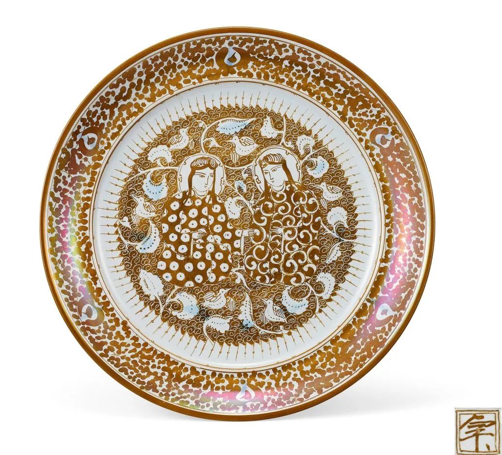 加藤卓男 ラスター彩胡姫紋大皿(共箱)