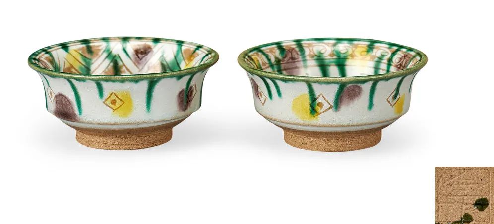 箱書(箱款):ペルシア(波斯)三彩遊鹿紋酒杯 卓 ペルシア(波斯)三彩胡姫紋酒杯 卓 国指定重要無形文化財