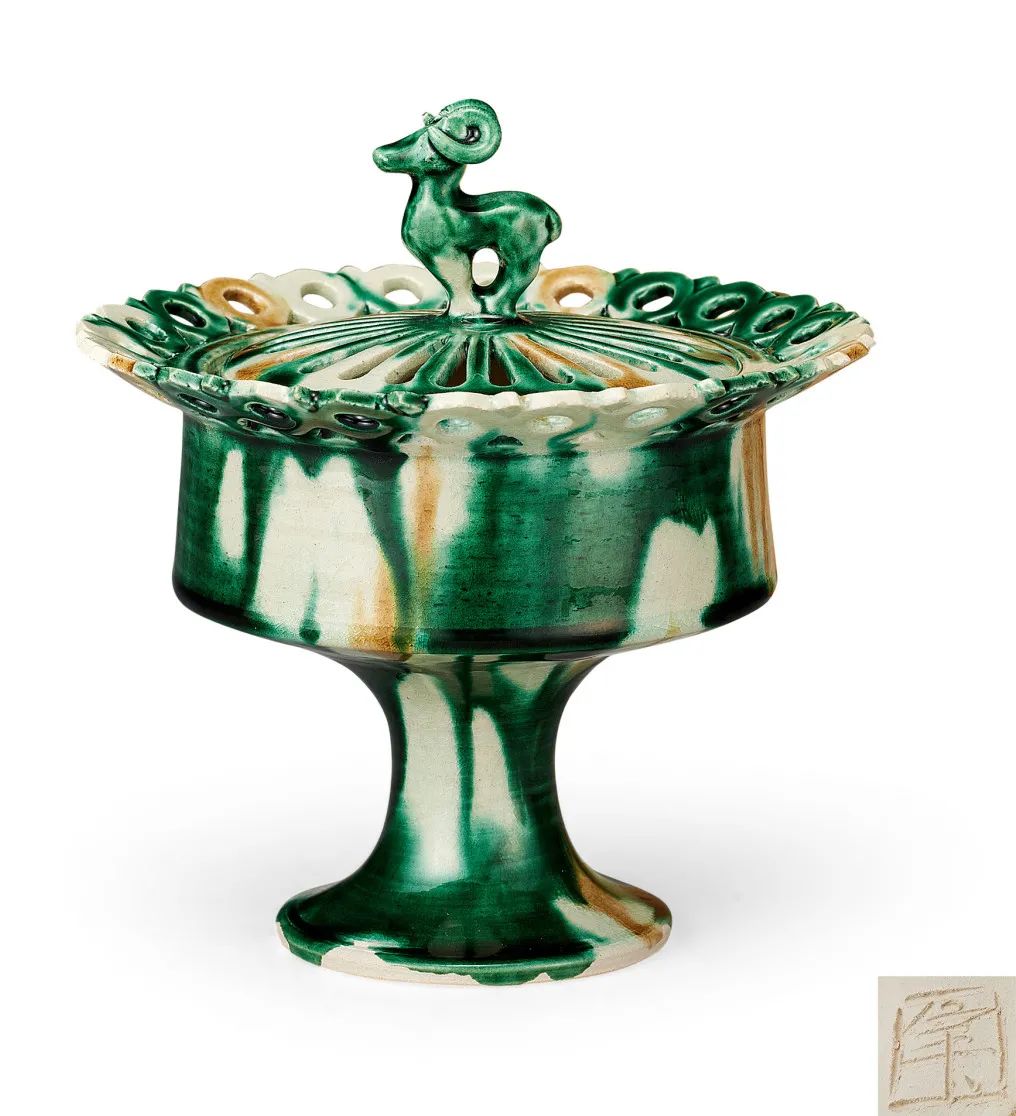 加藤卓男 正倉院復元三彩山羊冠香爐(共箱)