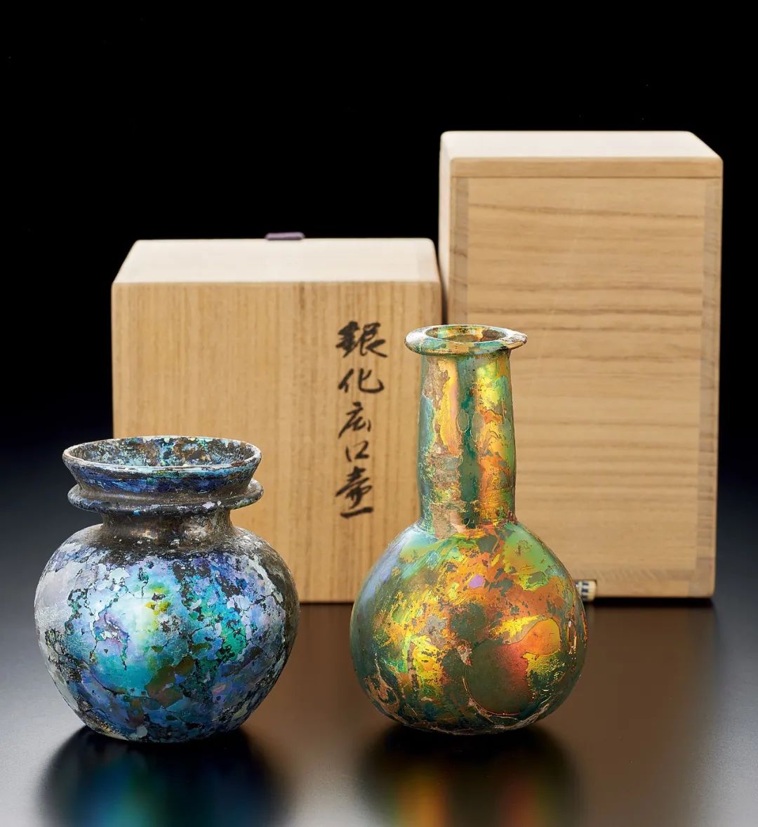 羅馬玻璃經過長期的土壤風化形成了「銀化」現象,此種銀化現象並非人為產物。這是玻璃的成分、時間等各要素的完美結合而產生的,是歲月的產物,展現著歲月之美。此次東京中央拍賣將帶您領略古羅馬玻璃藝術之璀璨。