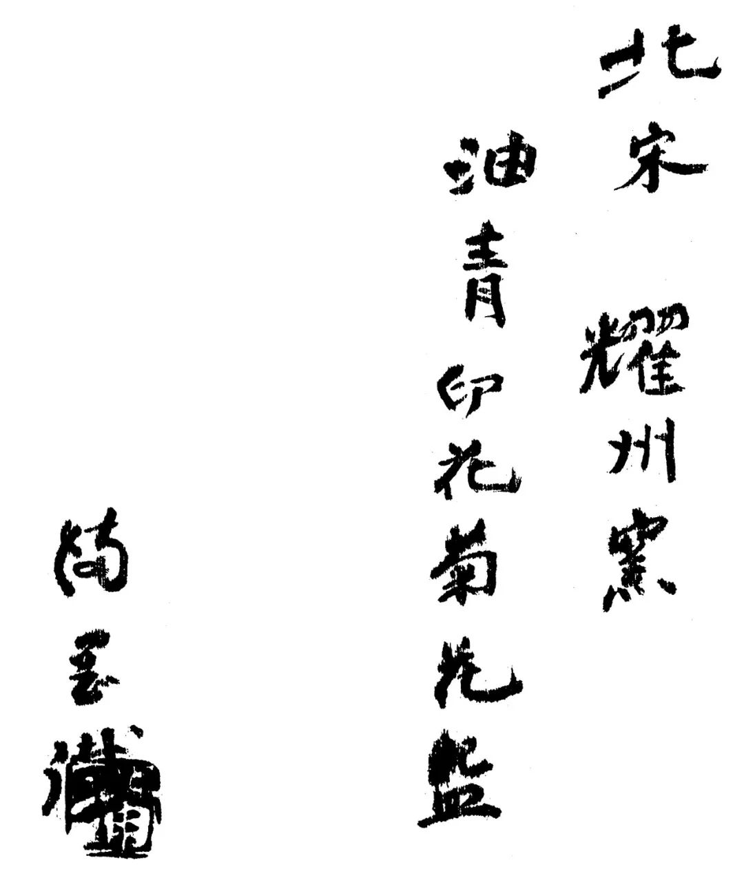 箱書:北宋 耀州窯油青印花菊花碗 陶□識