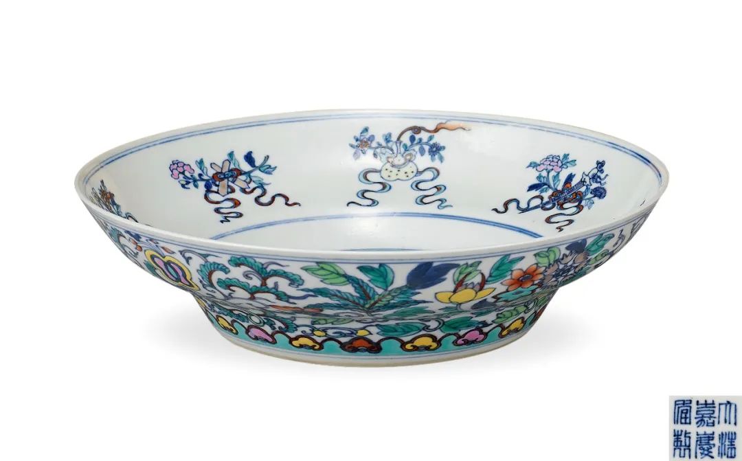 箱書:清嘉慶 豆彩八宝紋鉢 竹世