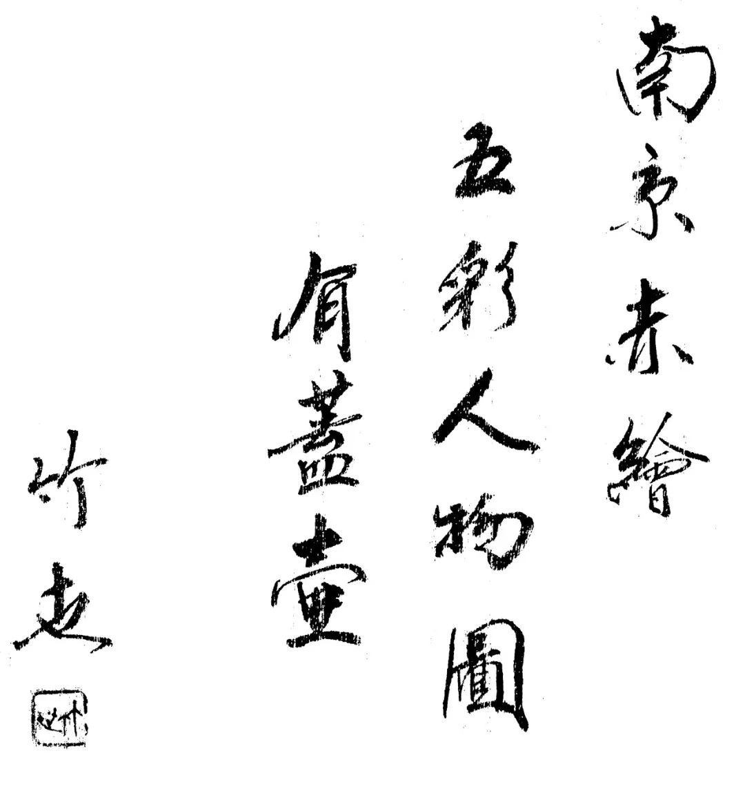 箱書:南京赤繪 五彩人物図 有蓋壺 竹世