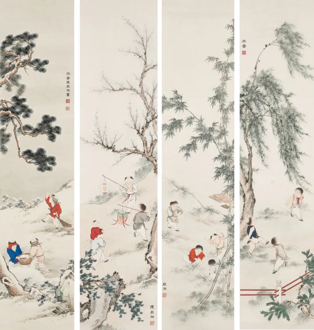 陳啓湖(1912-1999) 嬰戲圖四條屏