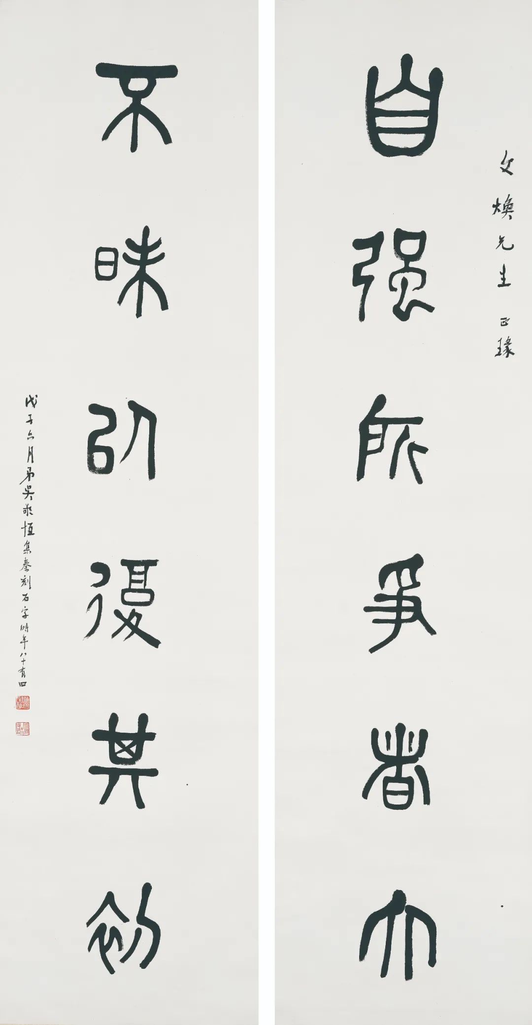 款識:戊子六月,弟吳敬恒集秦刻石字,時年八十有四。