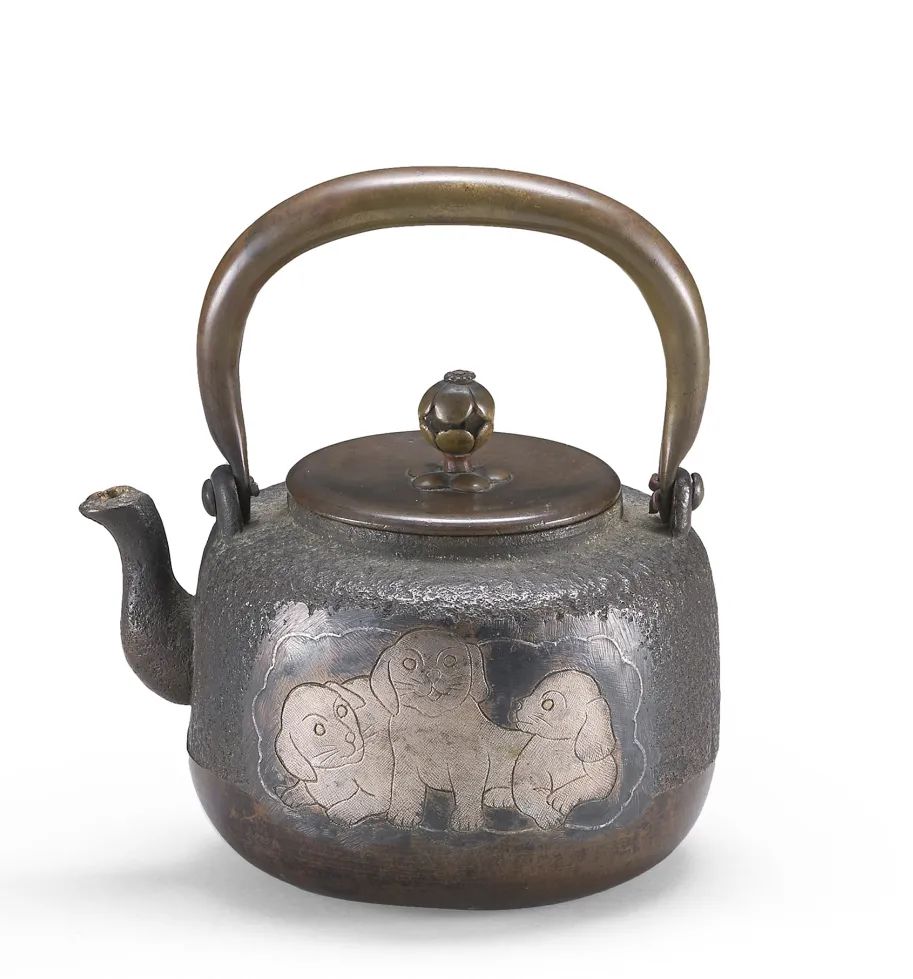 A SILVER-INLAID IRON 'ANIMAL' TEAPOT