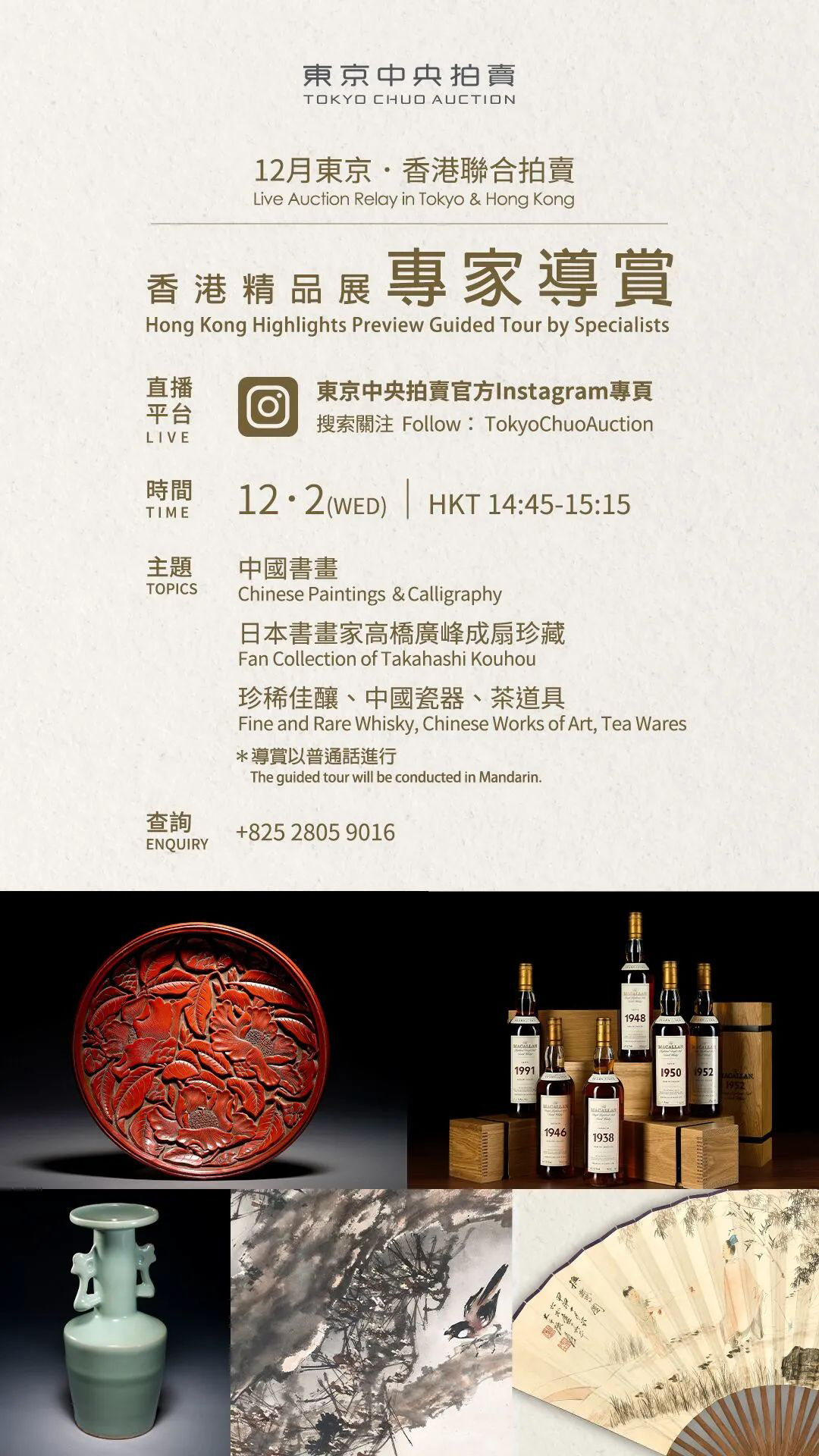 為了能讓更多無法親臨現場的藝術愛好者也能觀展,東京中央拍賣將於12月2日在Instagram專頁(東京中央拍賣Ins賬號:TokyoChuoAuction)由專家進行預展現場導覽直播,邀您共同鑒賞12月聯合拍賣的精美藝術品。