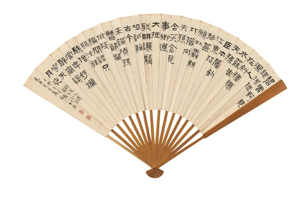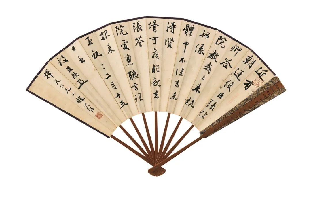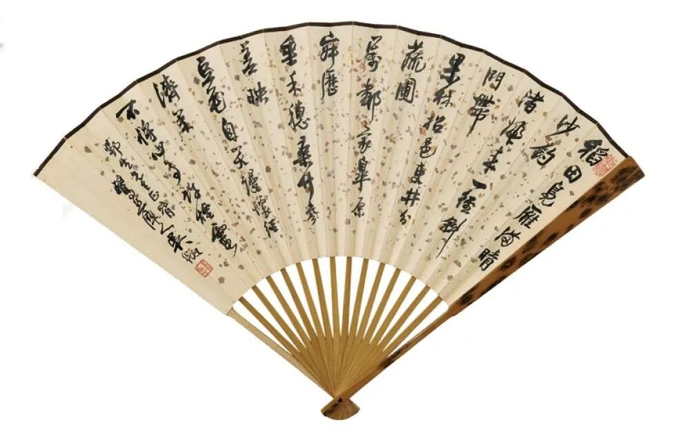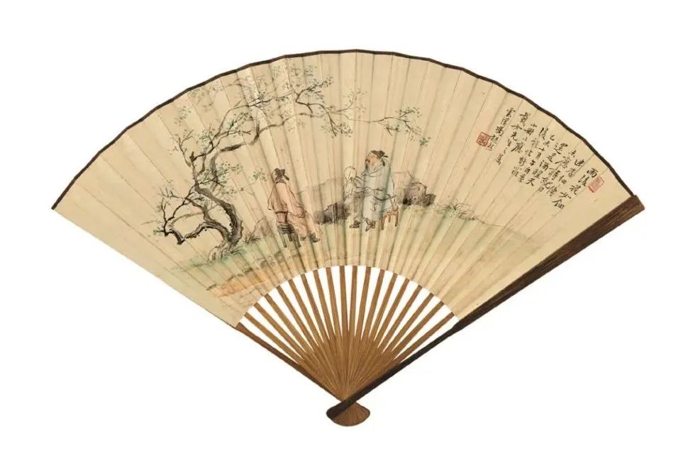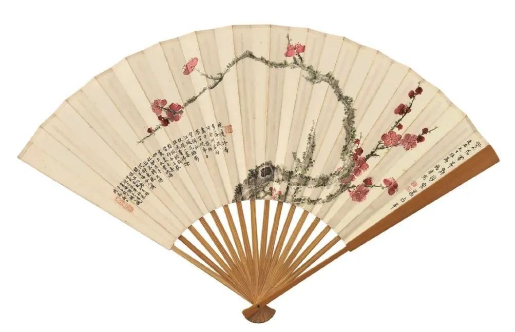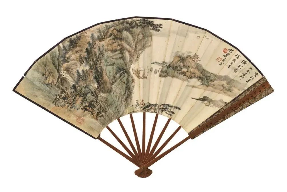 “求扇一頁,勝畫三尺”,扇面尺幅雖小,卻以小見大,集詩文、書畫、篆刻、製扇技藝於一身,歷來頗受文人雅士所愛。近代畫壇名家諸如齊白石、吳昌碩、張大千、徐悲鴻等,均是畫扇能手。一柄折扇,盈尺之間,即是筆頭功夫的展現, 亦是高山流水之情誼。其獨特的藝術魅力,為眾多藏家所青睞。文人折扇,作為藝術收藏的一個重要門類,其身上所蘊含的收藏品味與故事值得後人細細品讀。