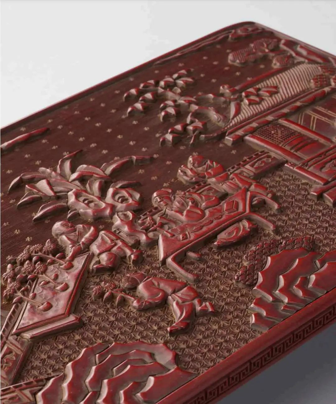 整器形制古樸典雅,雕刻精細工整,漆色鮮亮,刀法渾厚婉轉,藏鋒不露,精到上乘,實為一件不可多得的漆器作品。此作品來源藤田家舊藏。藤田美術館由日本財閥「藤田家族」創立於1954年,主要收藏中國、日本等東亞國家的古代藝術品,其館藏品約2000件,數量乃是日本私人美術館之最,不少藏品被認定為國寶及重要文化財。