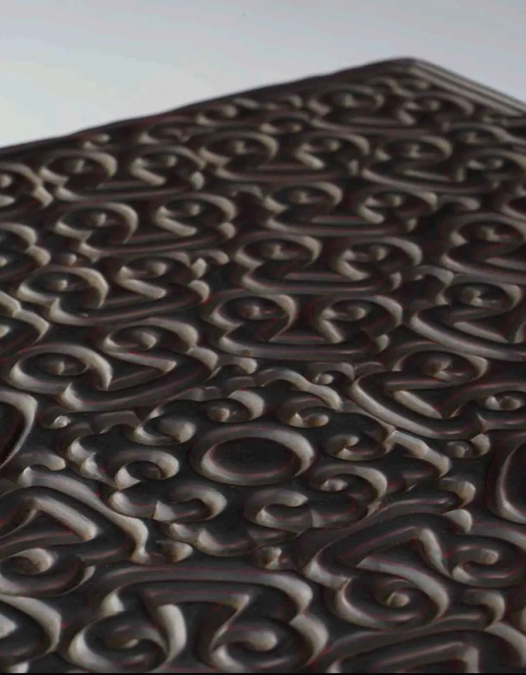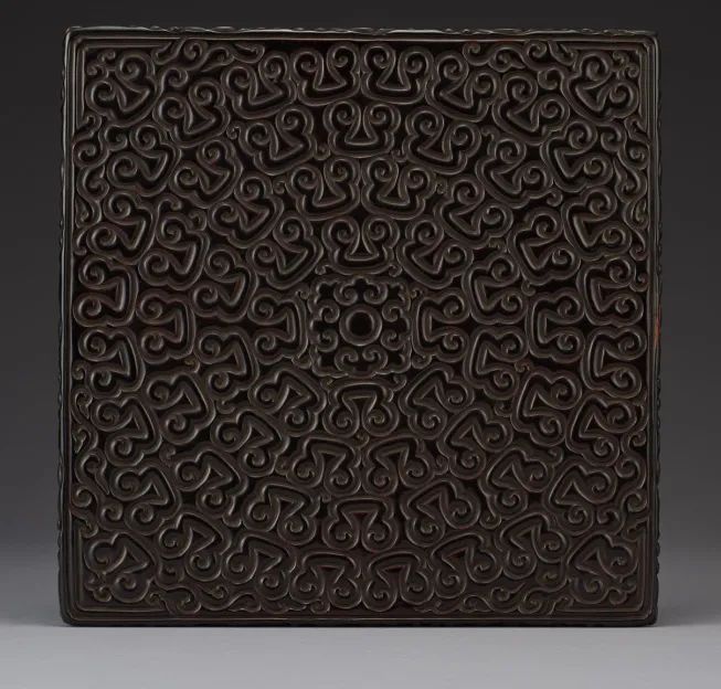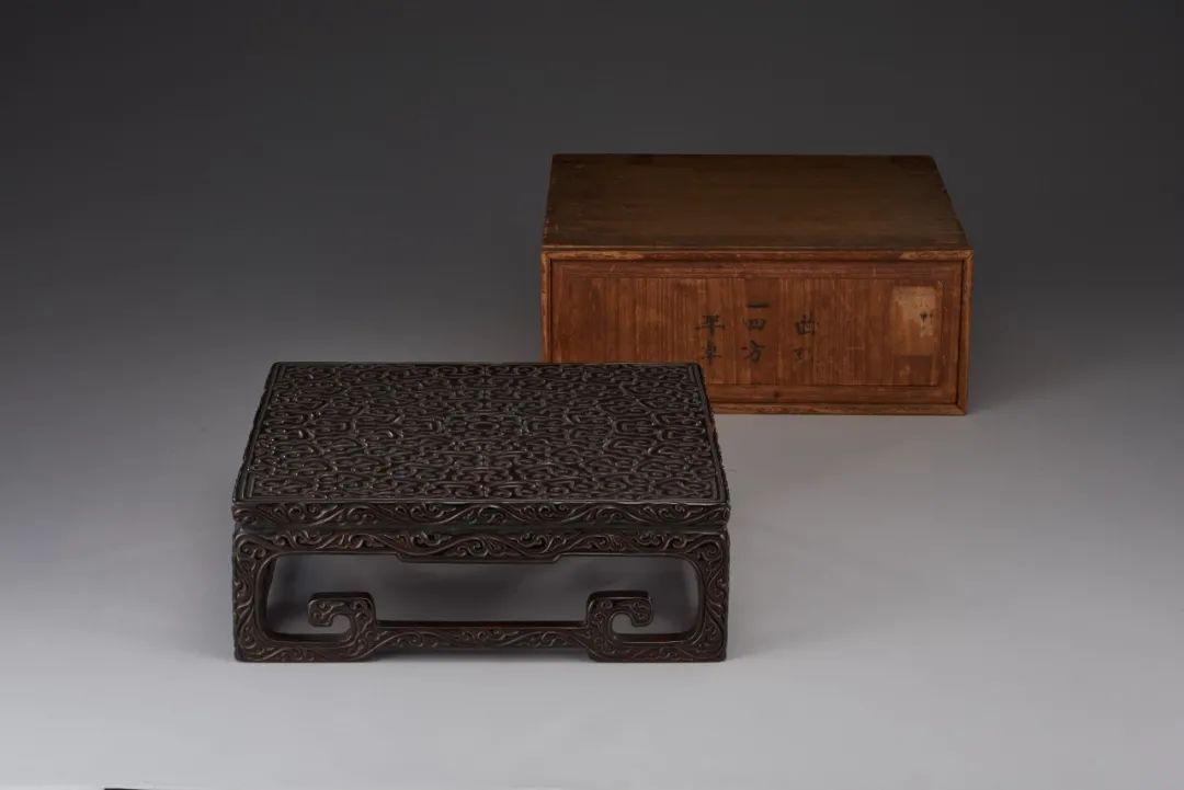 此件明代剔犀如意紋四方台,造型規整,樸實素雅。整器以剔犀手法雕如意紋,線條流暢優美,漆層肥厚,光澤蘊亮,刀鋒犀利,刀口深峻,立體感極強。剔犀為雕漆中的特殊門類,習稱“雲雕”。明初曹昭《格古要論》卷八記述:“古剔犀器皿,以滑地紫犀為貴,俗謂之棗兒犀。剔犀題材多為古樸內斂,以雕刻線條簡練流暢的雲紋為主,此如意紋四方台便為一例,古色古香,深得明代精品家具之餘韻。