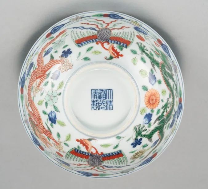 清道光 五彩龍鳳紋鉢