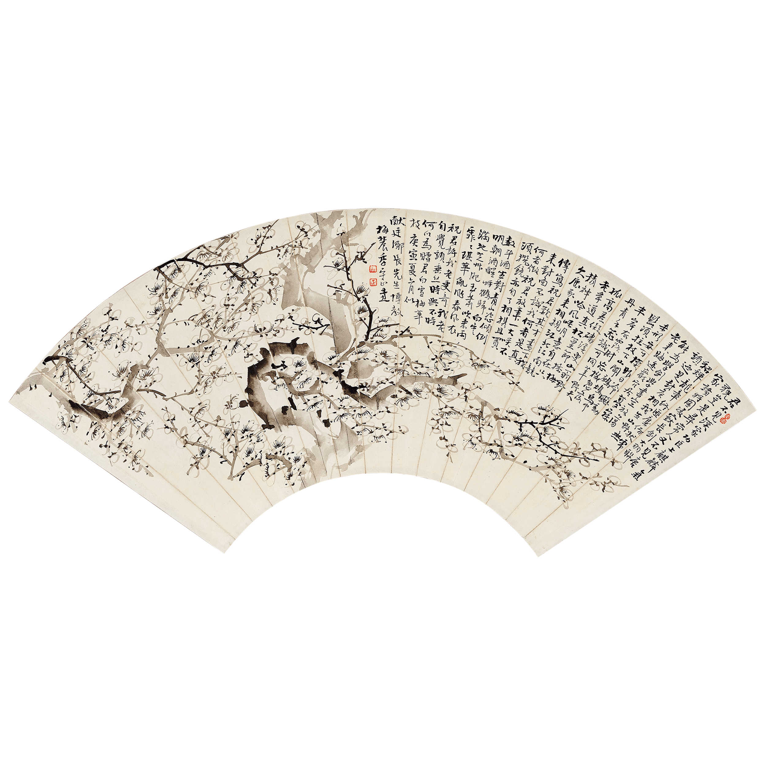 在書畫鑒定方面,張大千同樣不吝提點。遙想初次見面時,髙橋特意帶兩幅日本購買的曾熙對聯和張善孖《雙馬圖》給大千過目,都被其認定為真跡,眼力頗受讚許。作為大風堂門人,髙橋飽覽古今名跡,終日臨摹吳昌碩、齊白石、李苦禪、李可染等畫法,也在此過程中,逐漸形成一批可觀的收藏。如今,髙橋的家中依然珍藏著大批名家真跡,大多直接受贈於藝術家本人,或者作為研究資料收集而來。正如本專場中的張大千的《潑彩山水》、傅抱石《高士山水四幅》,曾刊載在1993年髙橋出版的《四季の画賛》一書中,并附文字敘述,書中尤其對張大千的《潑彩山水》明確指出,畫上所鈐印的是張氏二十歲左右的早期印章,可見其鑽研之深。