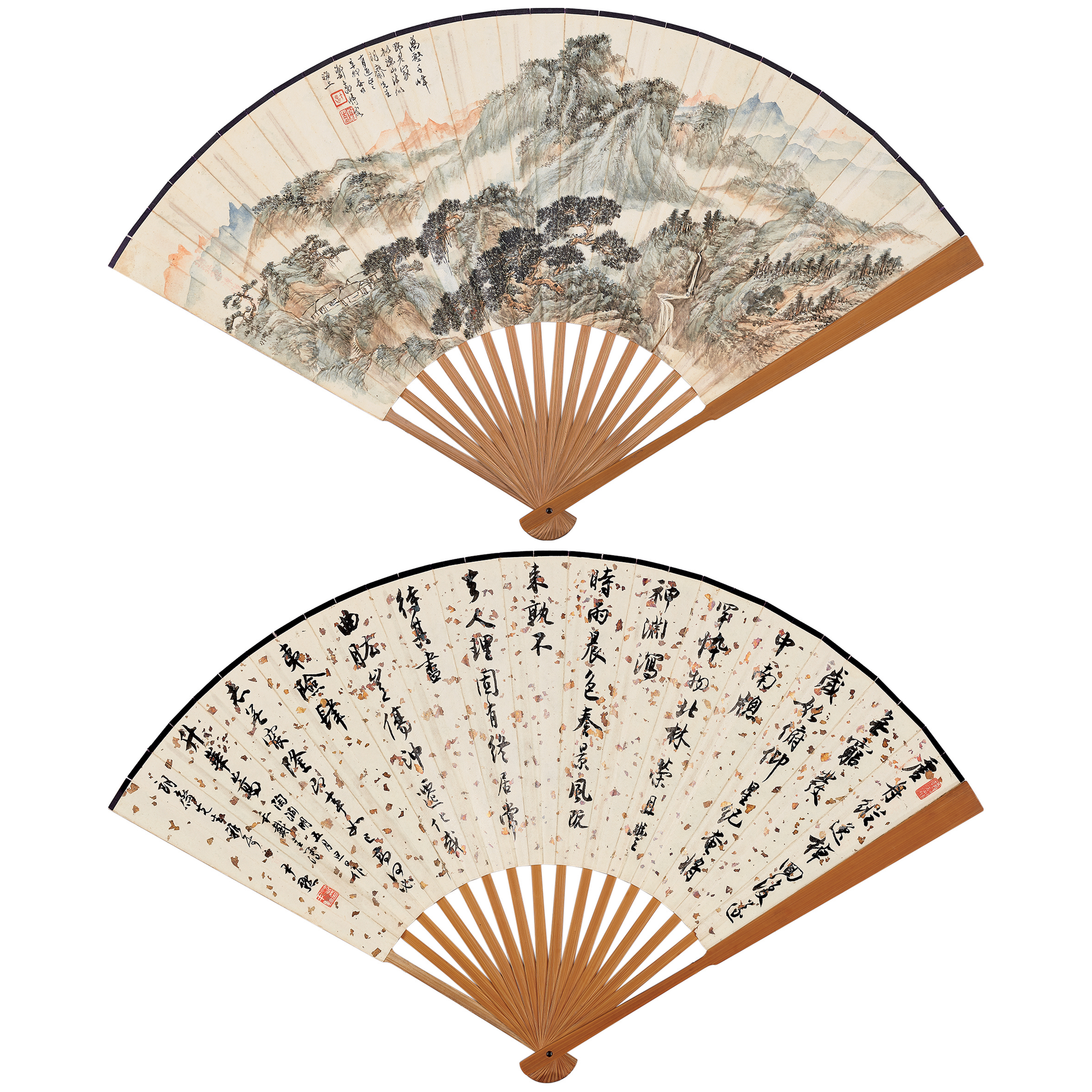 款識:[畫]萬壑千峰野老家,擬漁山法似,朗齋先生有道正之,辛卯(1951)春日,鄭午昌時客海上。鈐印:午昌(朱)、鄭昶之印(朱)、