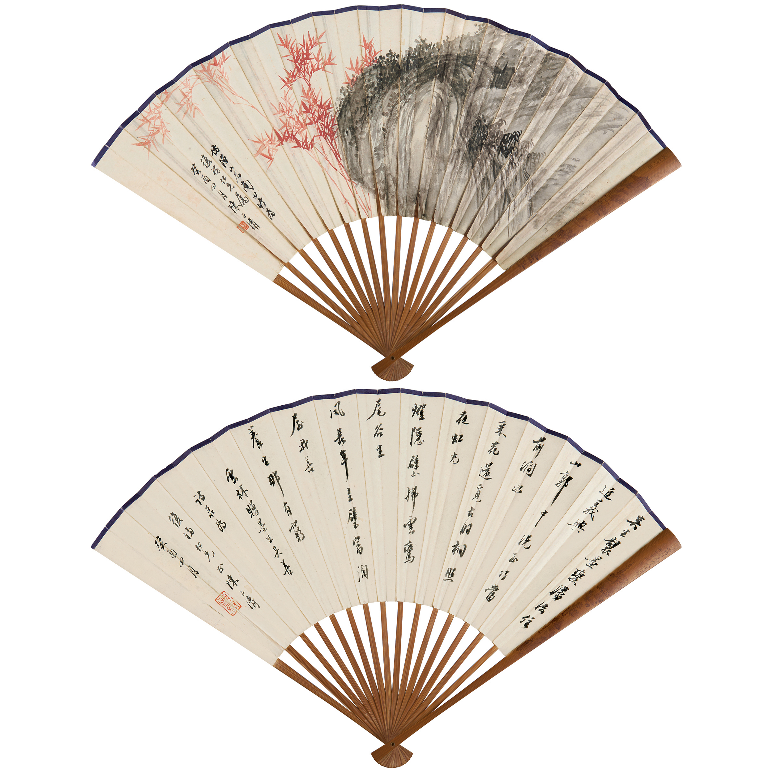 款識:[畫]仿漁山石、南田竹,為復初仁兄屬,癸酉四月,陳子清。鈐印:陳(白)
