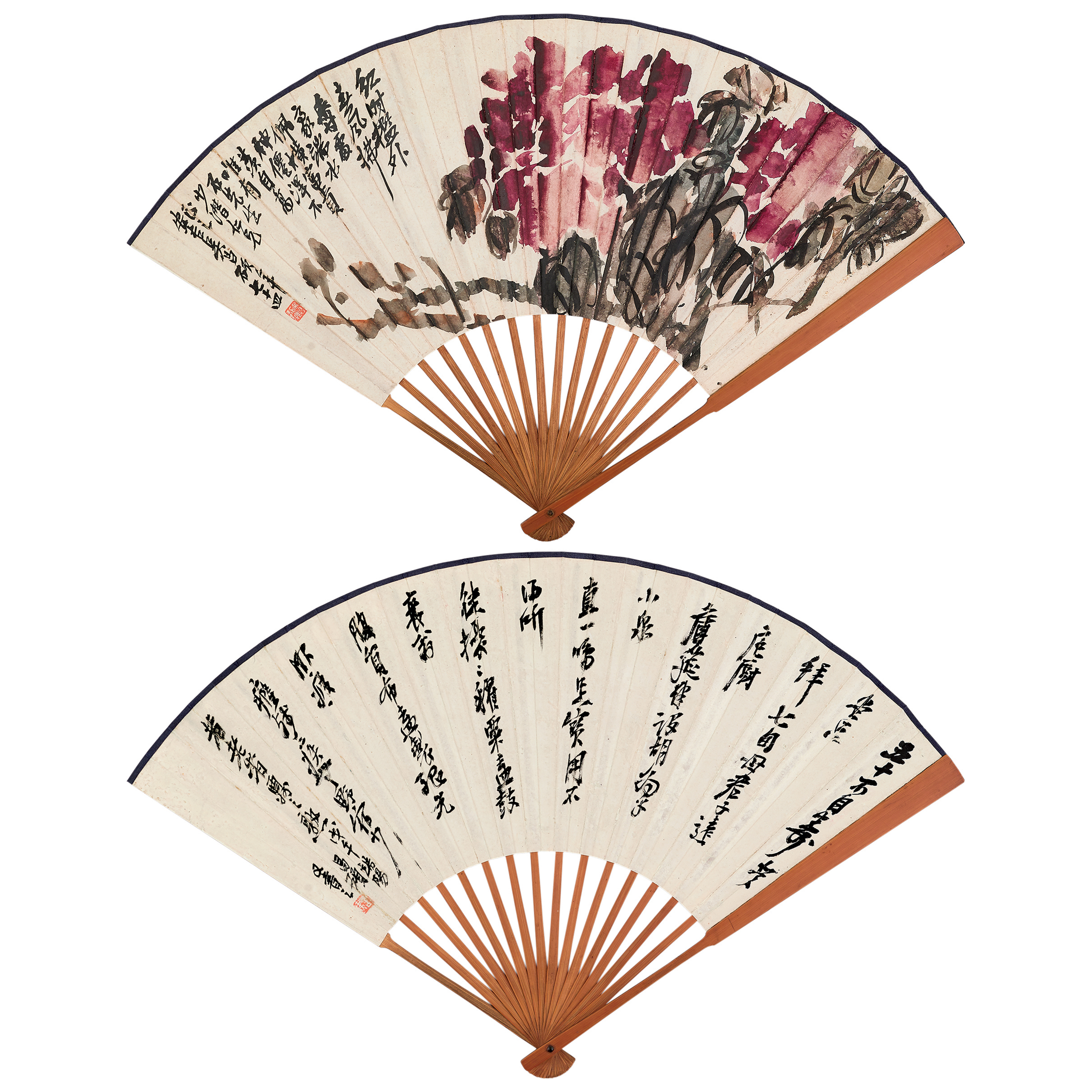 款識:[畫]紅時檻外春風拂,香處豪端水佩橫。 富貴神仙渾不羨,自高唯有石先生。少潛仁兄正之,安吉吳昌碩年七十四。鈐印:吳昌石宜壽昌(白)