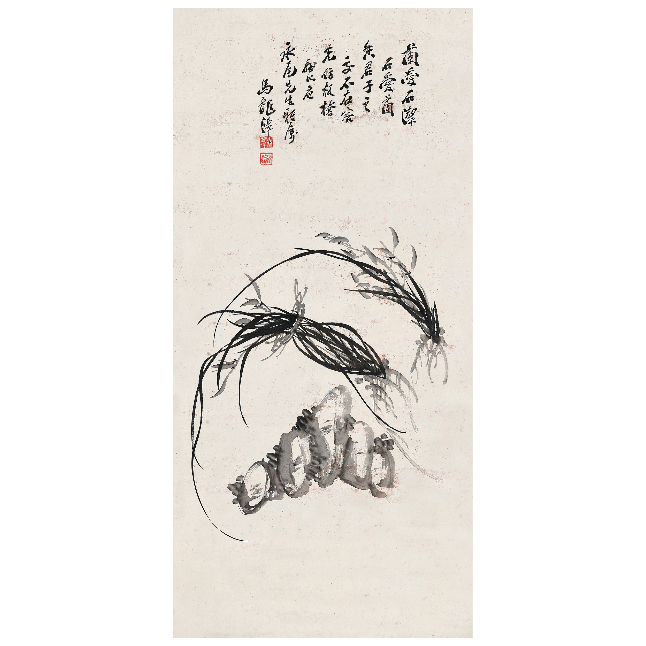 款識:蘭愛石潔,石愛蘭香,君子之交,不在容光。仿板橋畫以應永尾先生雅屬,馬龍潭。