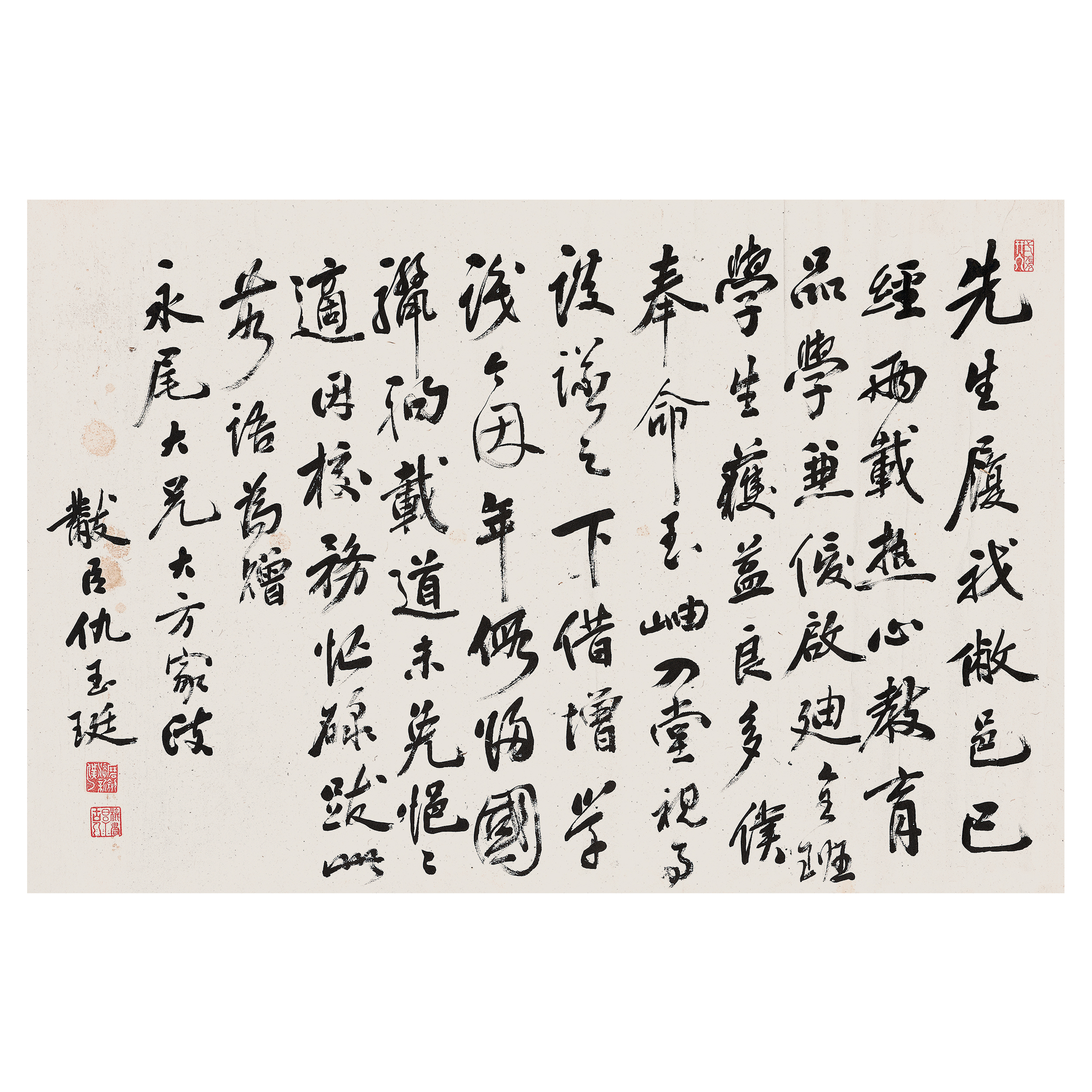釋文:先生履我敝邑已經兩載,熱心教育,品學兼優,啟迪全班學生,獲益良多,僕奉命至岫入堂,視事談議之,下借增學淺,今因年暇歸國,驪駒載道,未免悒悒適,因校務忙碌,跋此數語為贈。