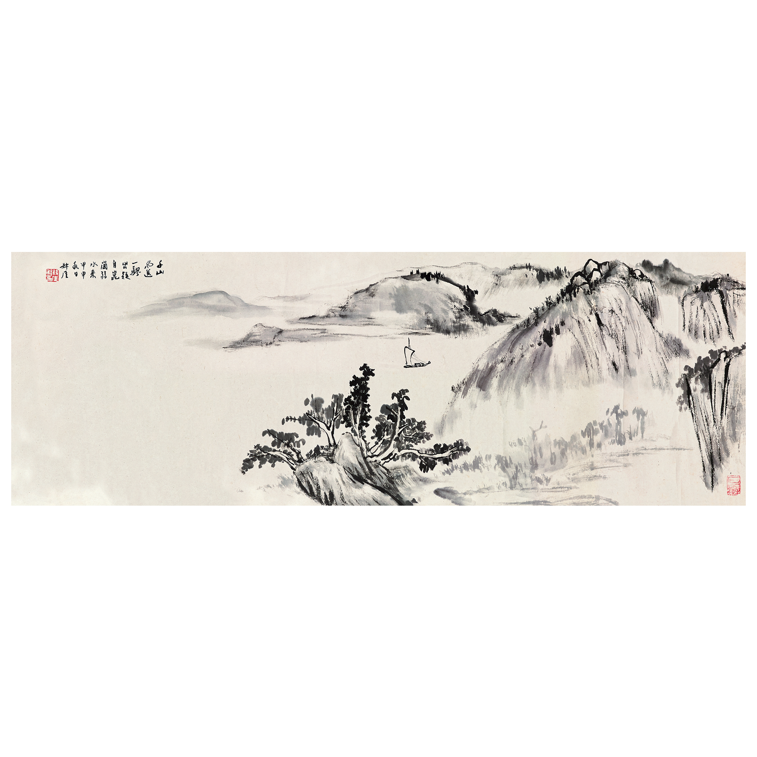 款識:千山風送一帆出,疑自崑崗弱水來。甲申秋日,叔崖。