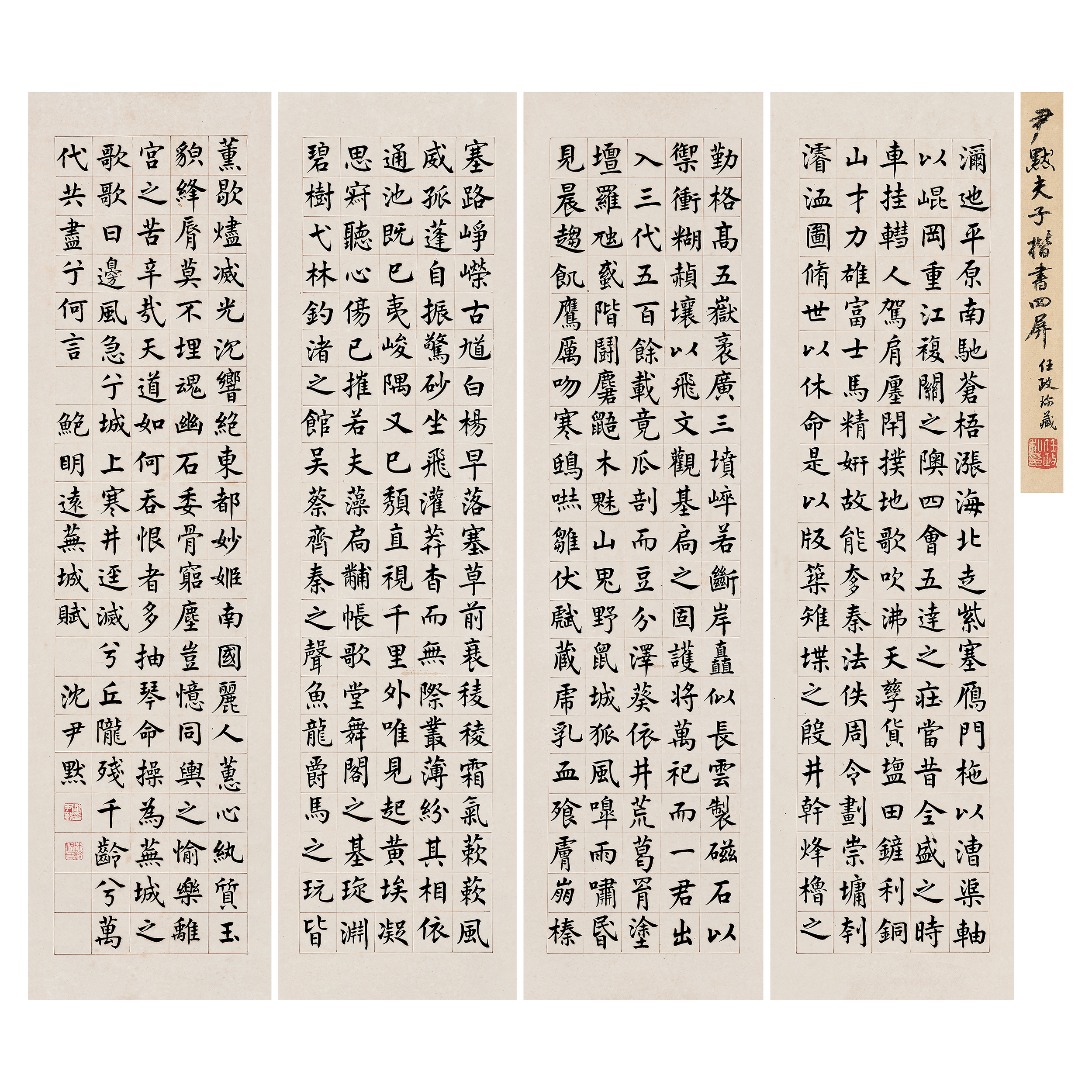 題簽:尹默夫子楷書四屏。任政珍藏。