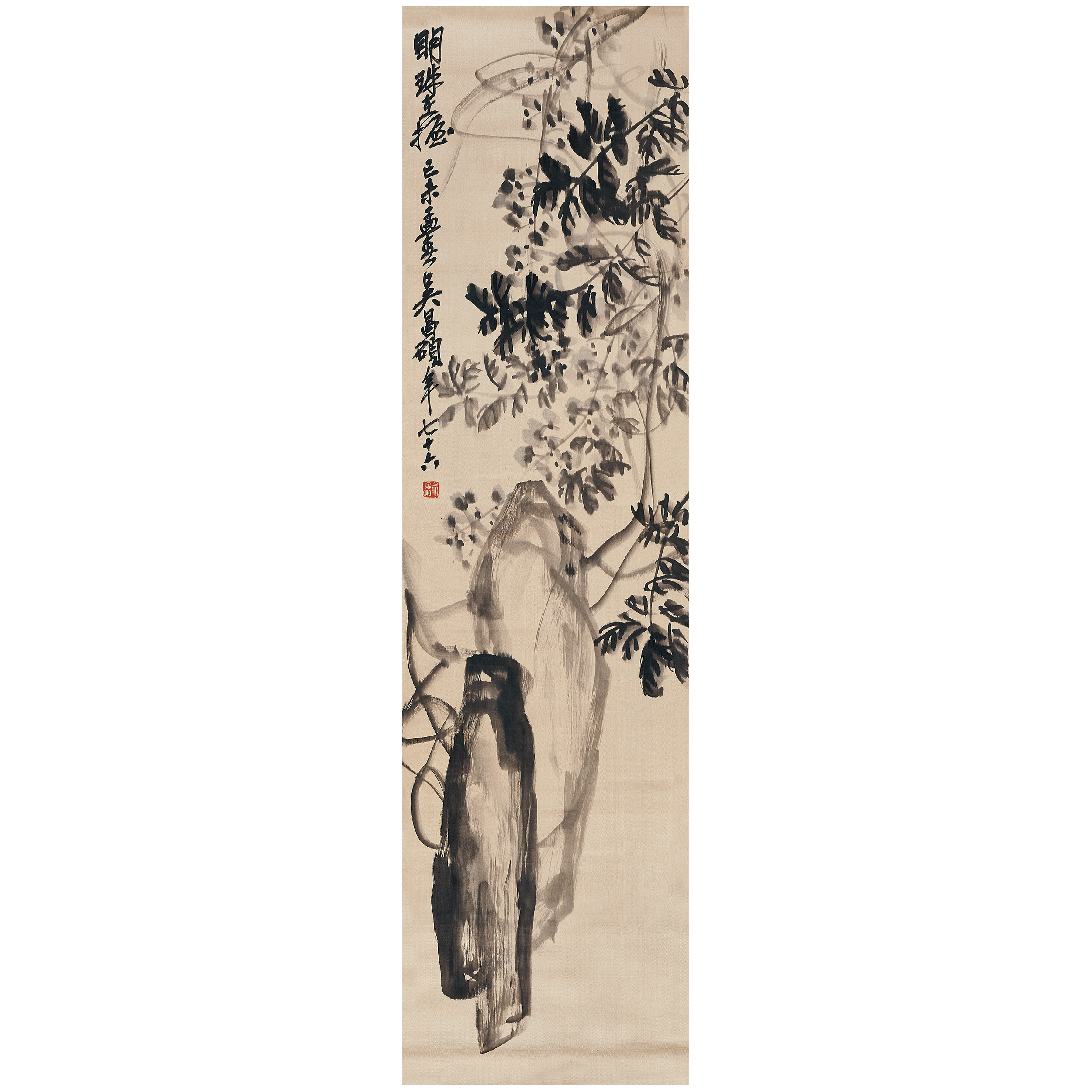 款識:明珠在握。己未孟春,吳昌碩年七十六。