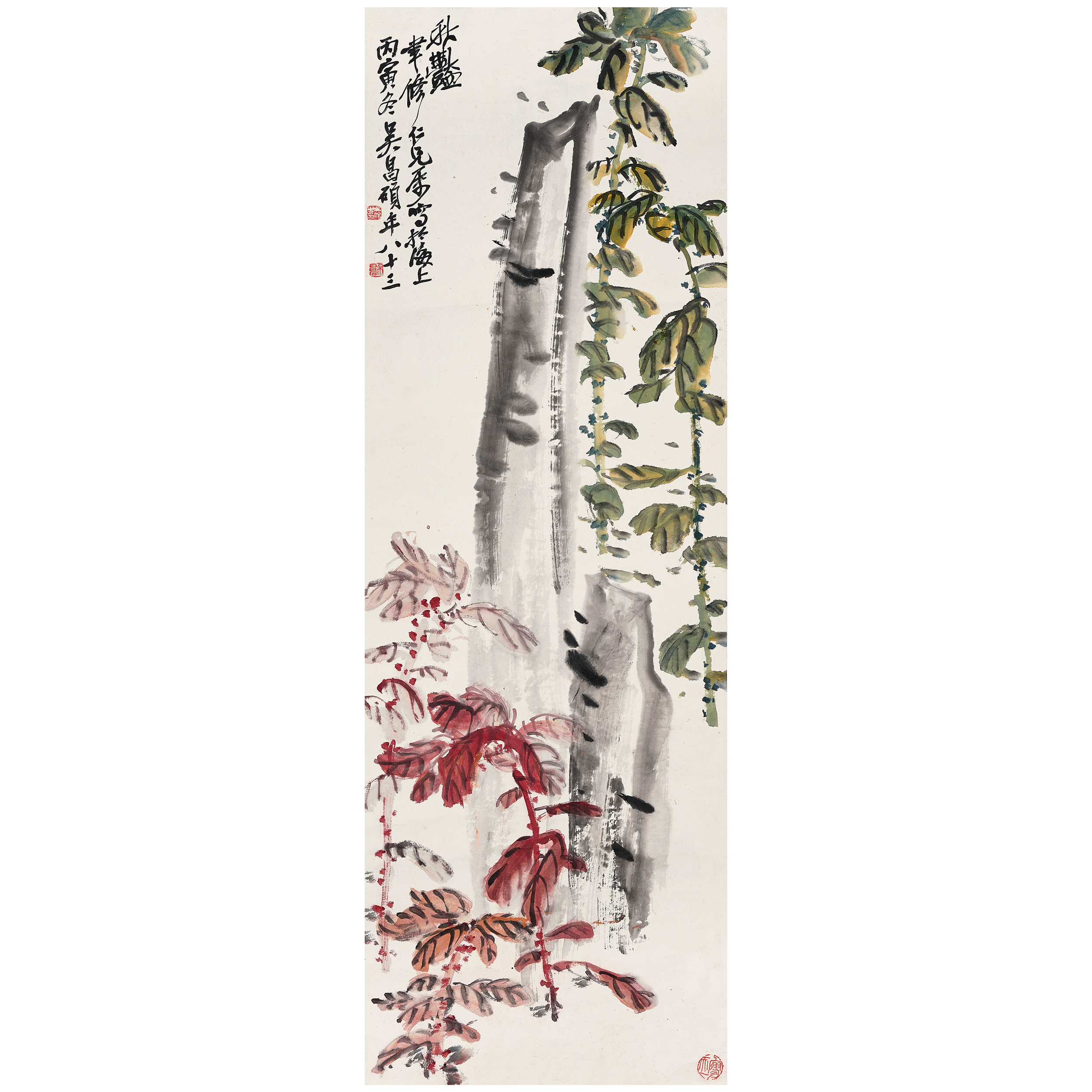 款識:秋艷。聿修仁兄屬,寫於海上,丙寅冬吳昌碩年八十三。