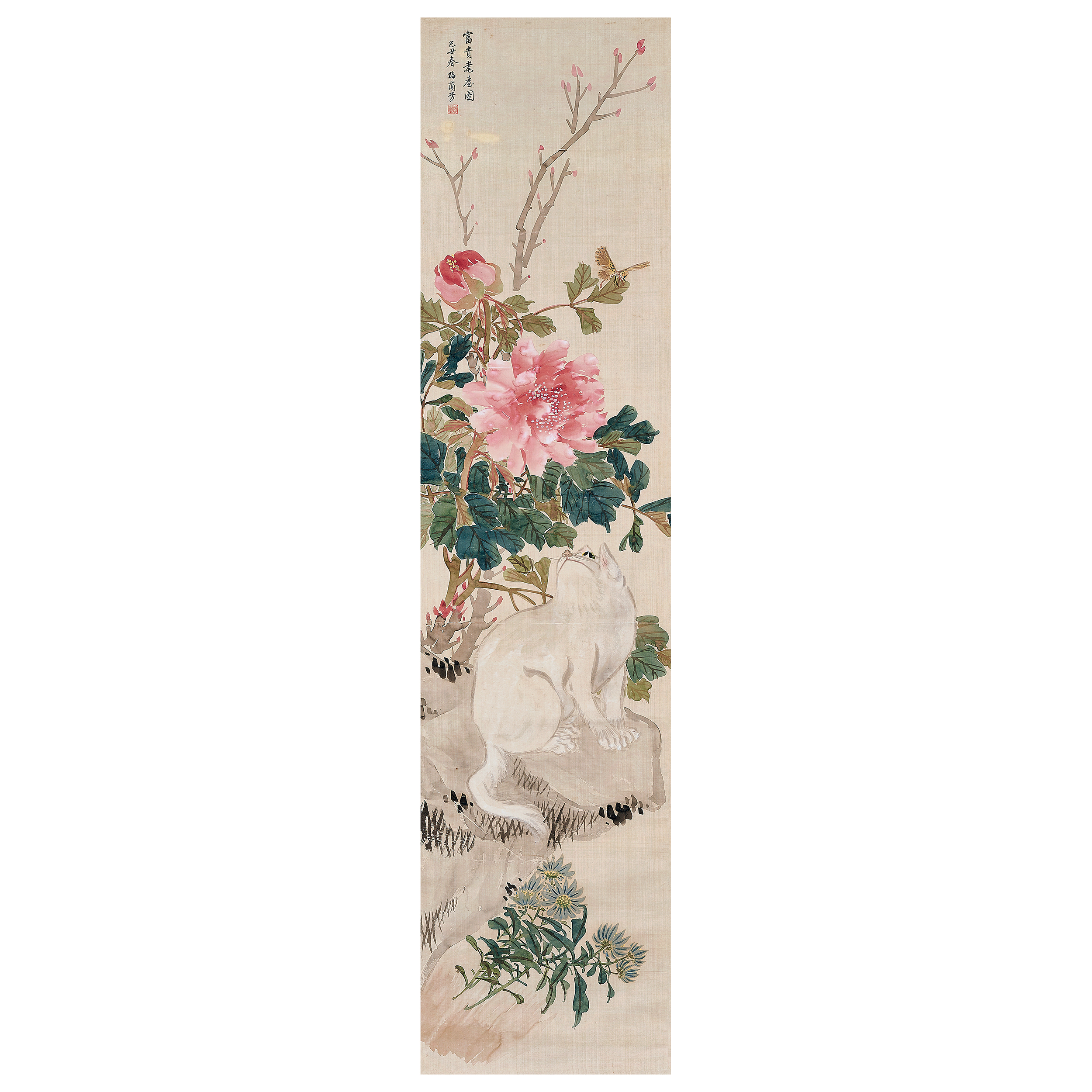 款識:富貴耄耋圖。己丑春,梅蘭芳。