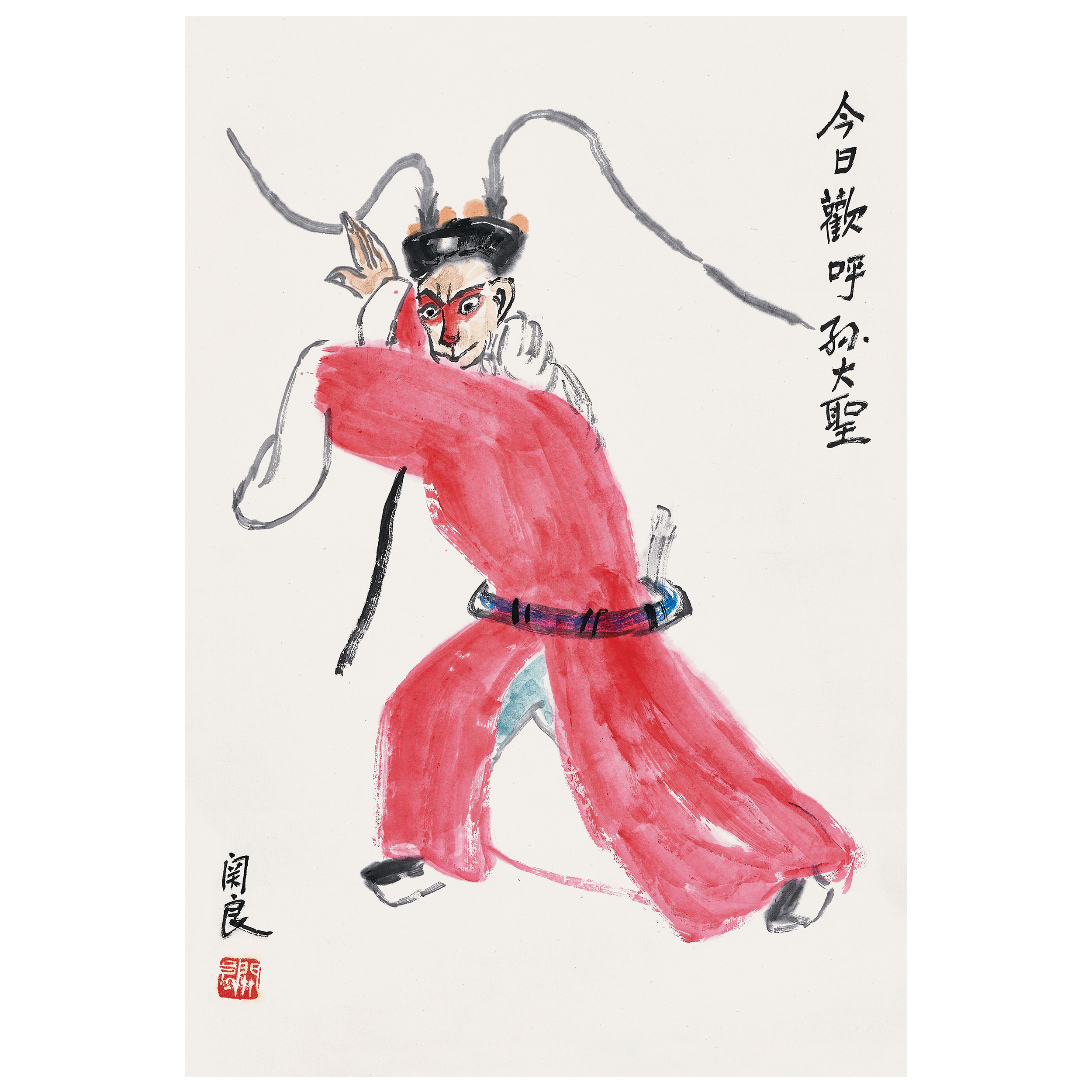 作者簡介:關良 字良公,擅長中國畫、油畫。曾任浙江美術學院教授、上海中國畫院畫師。作品用筆極簡,質樸平易,極富筆趣,不拘泥對象的解剖、透視和比例,而是以誇張、變形的手法傳神寫照,人物情態天真而幽默,尤其是眼神刻畫最見功力,眼睛瞳孔用濃墨點醒極傳神。