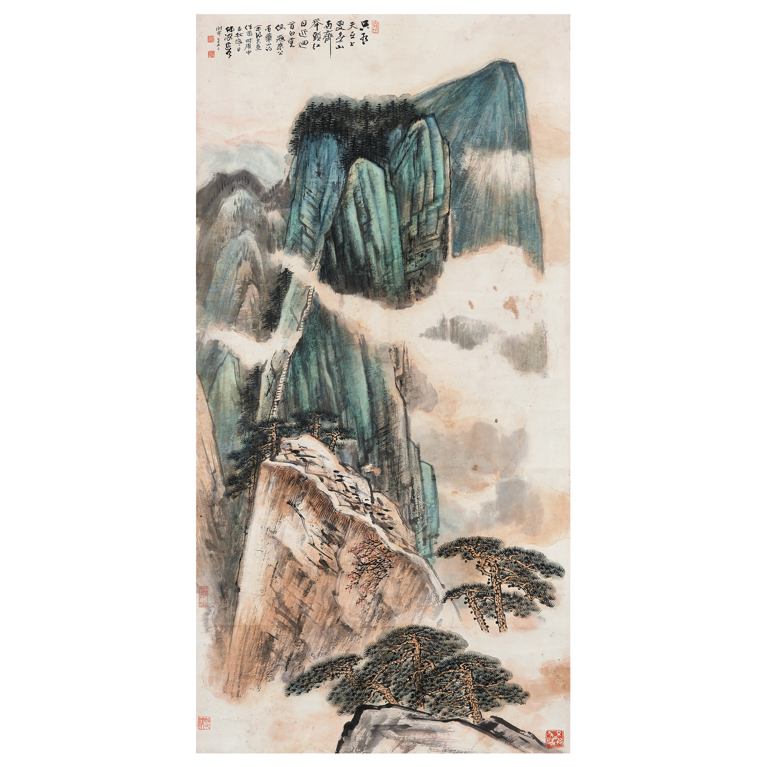 款識:只有天在上,更無山與齊,舉頭紅日近,回首白雲低。寇萊公有華山詩,余得其意作圖,時庚申立秋後一日,何海霞時年七十又二。