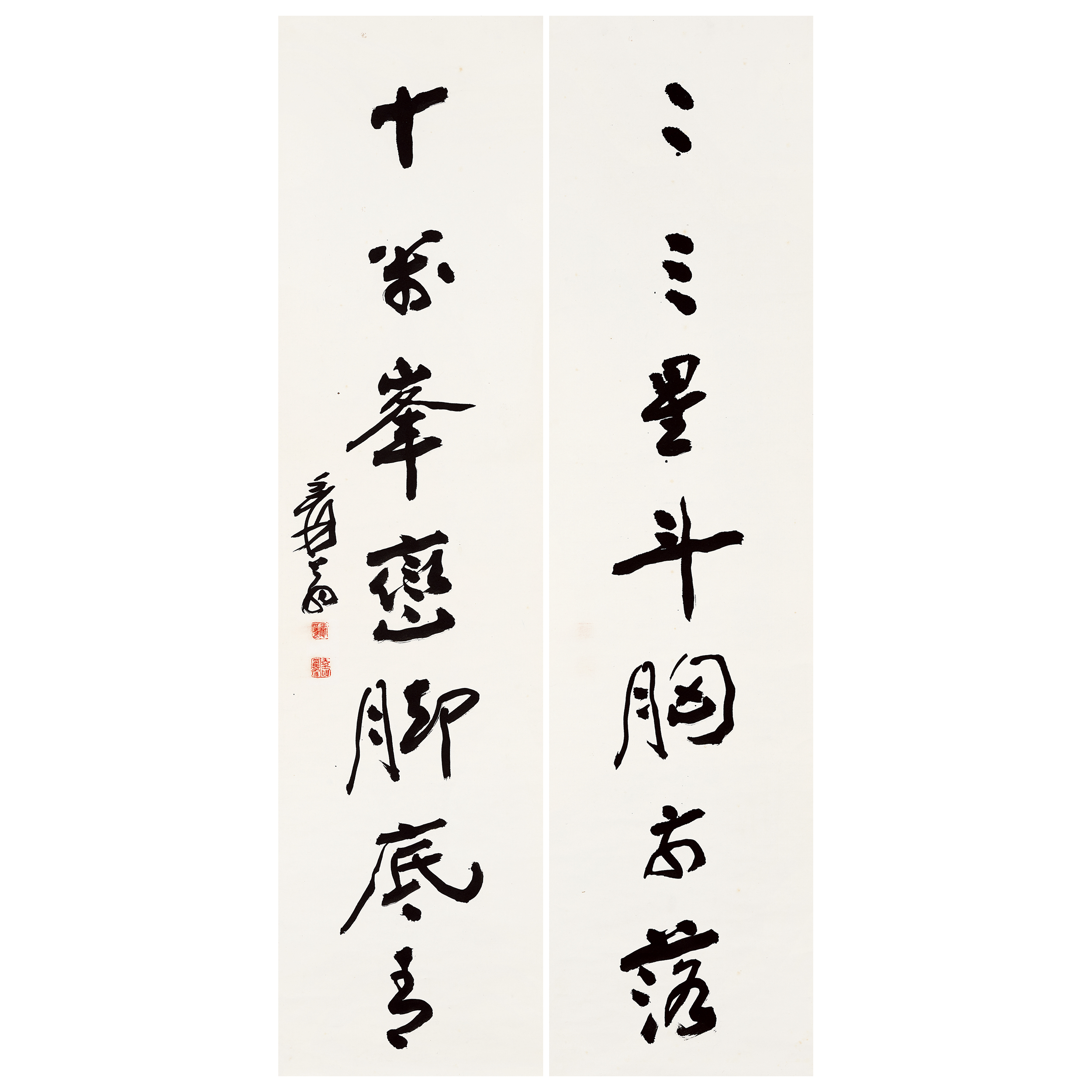 釋文:二三星斗胸前落,十萬峰巒腳底青。來源:日本書畫家髙橋廣峰同一舊藏。作者簡介:張大千 名爰,字季爰,號大千居士,四川內江人。無論是繪畫、書法、篆刻、詩詞都無所不通,尤善山水。一生充滿傳奇,如曾赴日學染織,又入寺為僧,並在戰火中遠赴敦煌臨摹壁畫等。後旅居海外,畫風工寫結合,重彩、水墨融為一體,尤其是潑墨與潑彩,開創了新的藝術風格,更被譽為近代繪畫史上一大家。