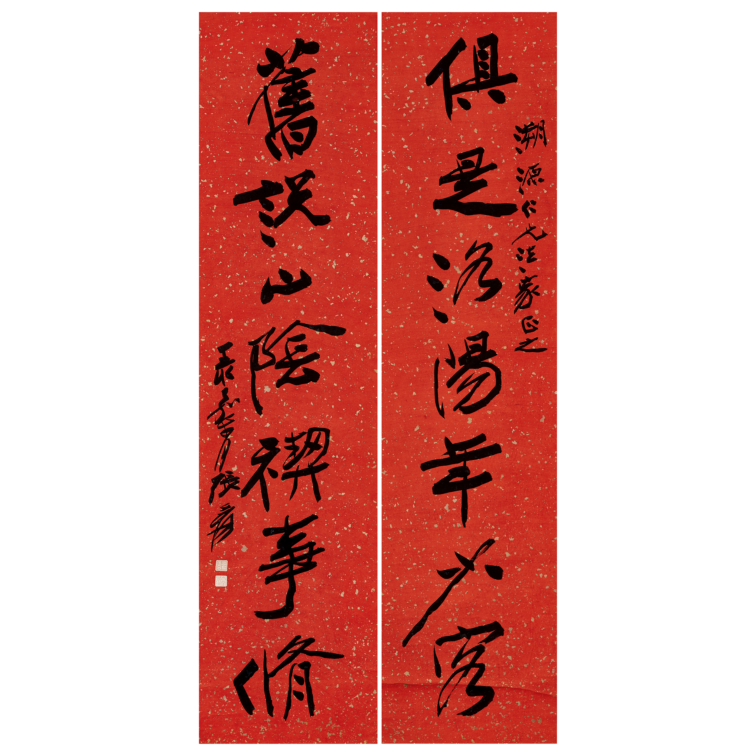 釋文:俱是洛陽年少客,舊說山陰禊事修。來源:日本書畫家髙橋廣峰同一舊藏。作者簡介:張大千 名爰,字季爰,號大千居士,四川內江人。無論是繪畫、書法、篆刻、詩詞都無所不通,尤善山水。一生充滿傳奇,如曾赴日學染織,又入寺為僧,並在戰火中遠赴敦煌臨摹壁畫等。後旅居海外,畫風工寫結合,重彩、水墨融為一體,尤其是潑墨與潑彩,開創了新的藝術風格,更被譽為近代繪畫史上一大家。