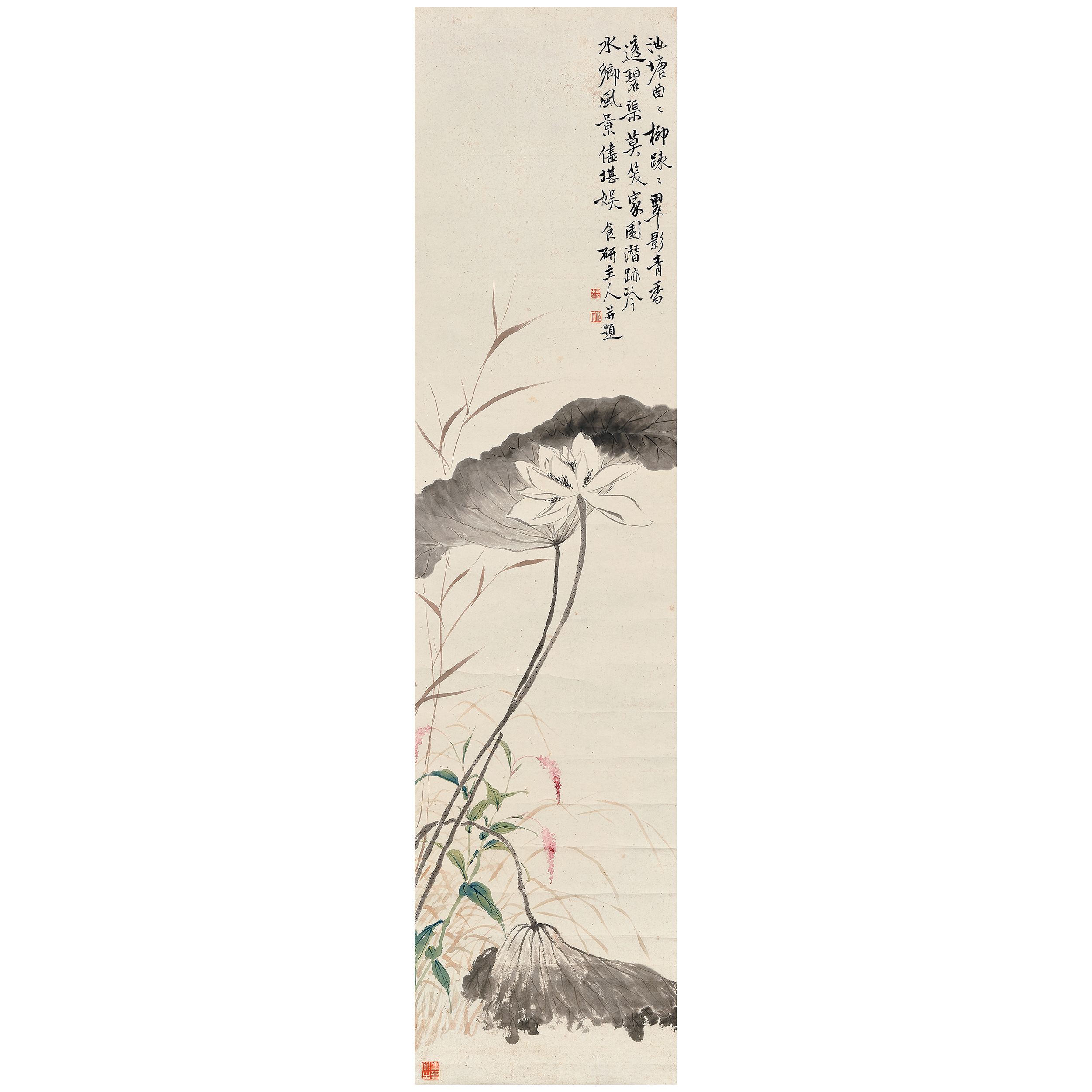 款識:池塘曲曲柳疏疏,翠影青香透碧渠,莫笑家園潛跡冷,水鄉風景盡堪娛。食研主人并題。