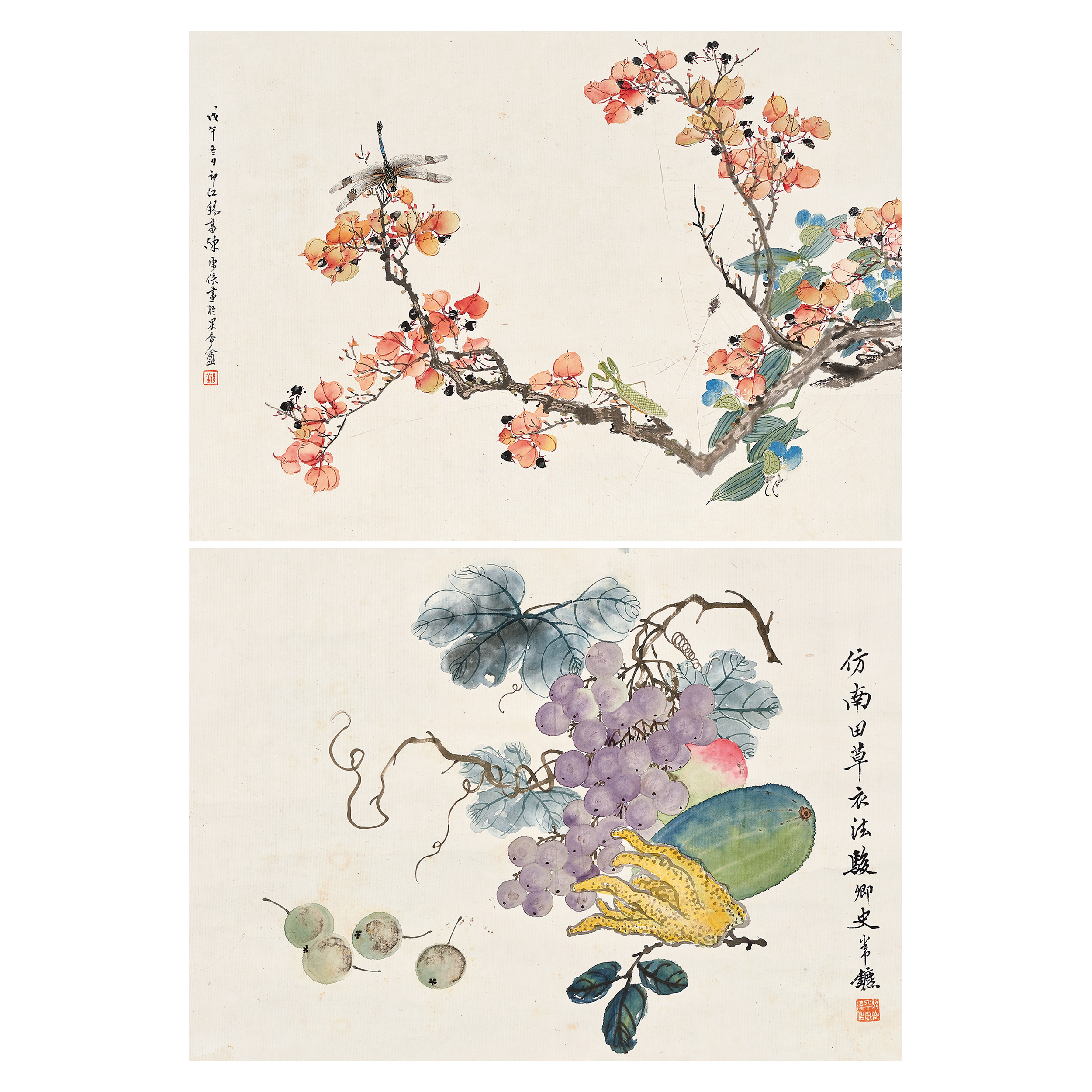 ①戊午(1918)冬日,邗江錫蕃陳康侯畫於果香盦。鈐印:錫蕃(朱)