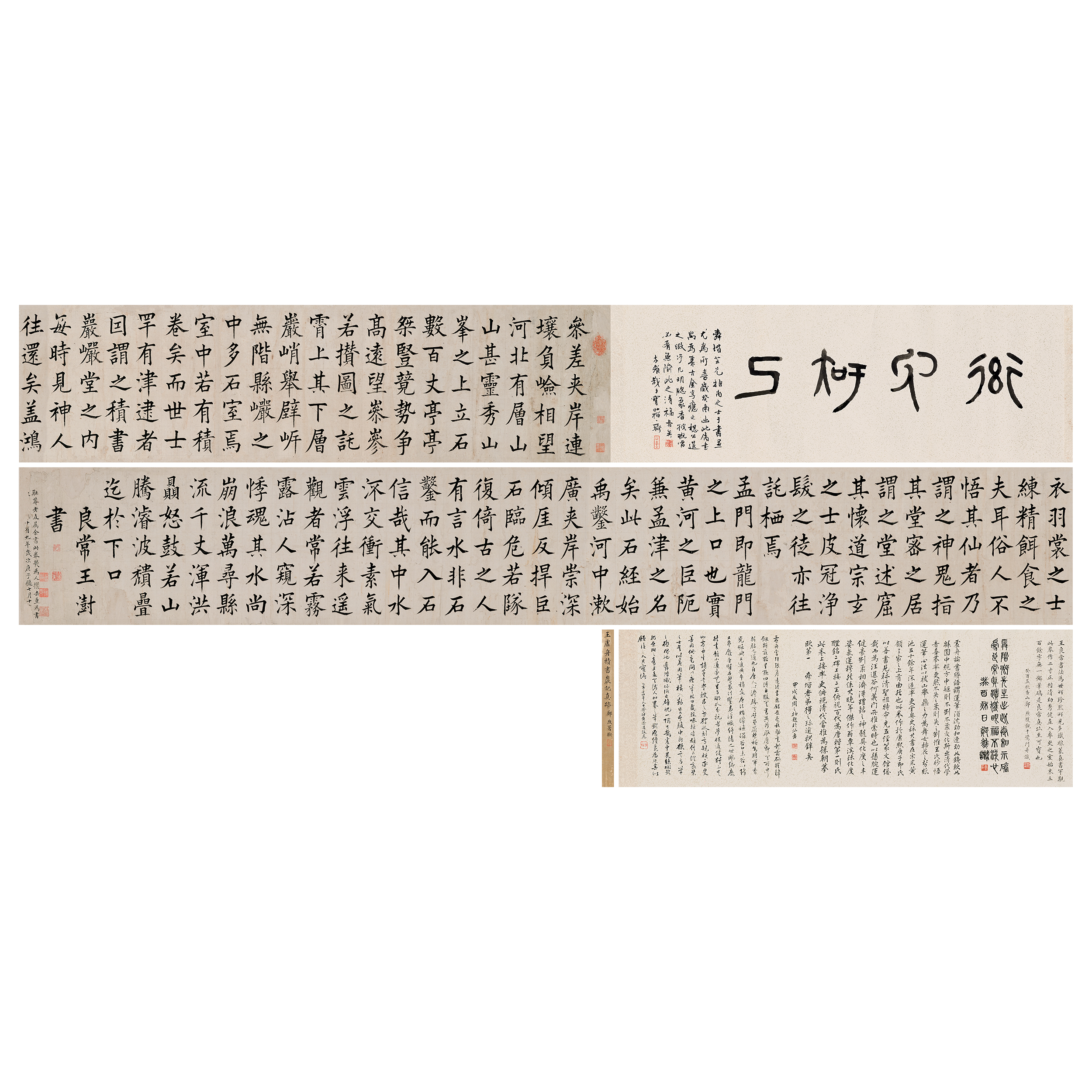 引首:32×91 cm 約2.6平尺;書:32×342 cm 約9.8平尺;跋:32.5×90 cm 約2.6平尺