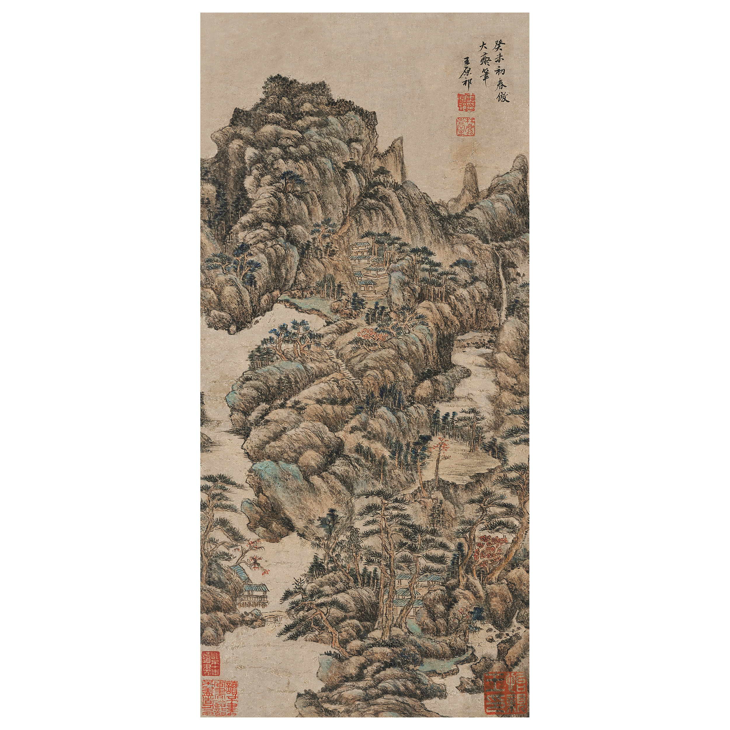 款識:癸未初春,仿大癡筆。王原祁。