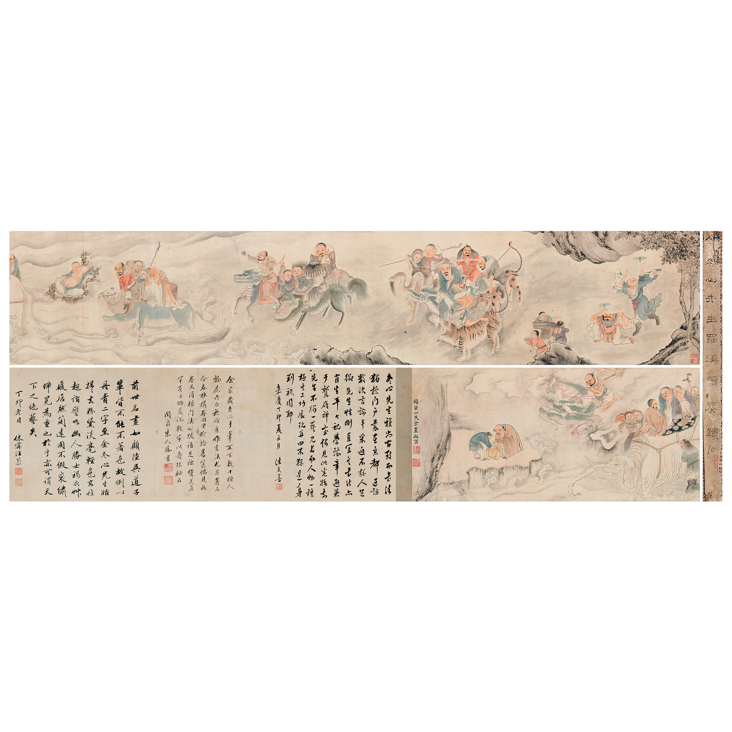 題簽:冬心先生羅漢圖真跡。鈐印:一印漫漶不辨鈐印:金農印信(朱白)、壽門(白)