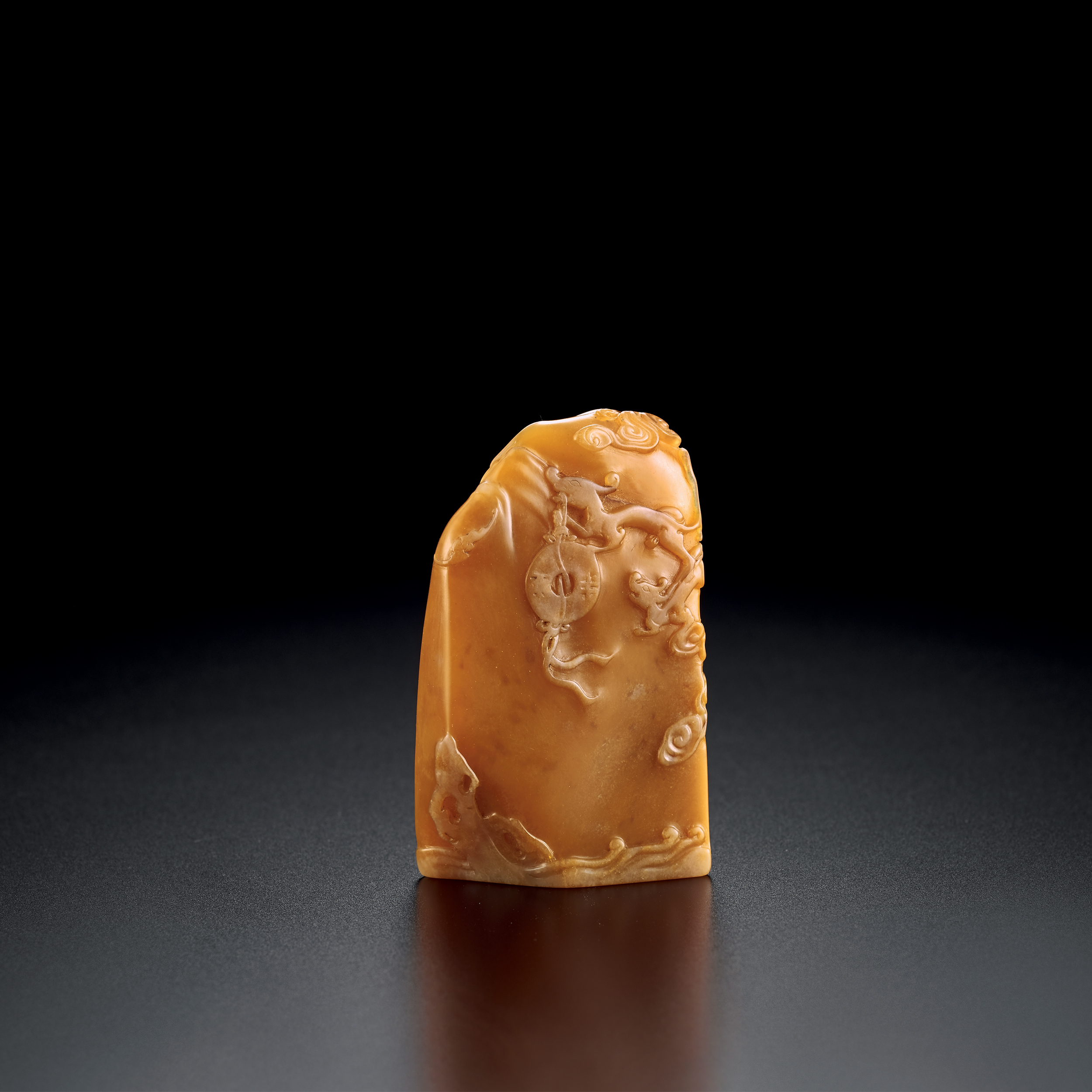 希古作田黃薄意螭龍獻財隨形印