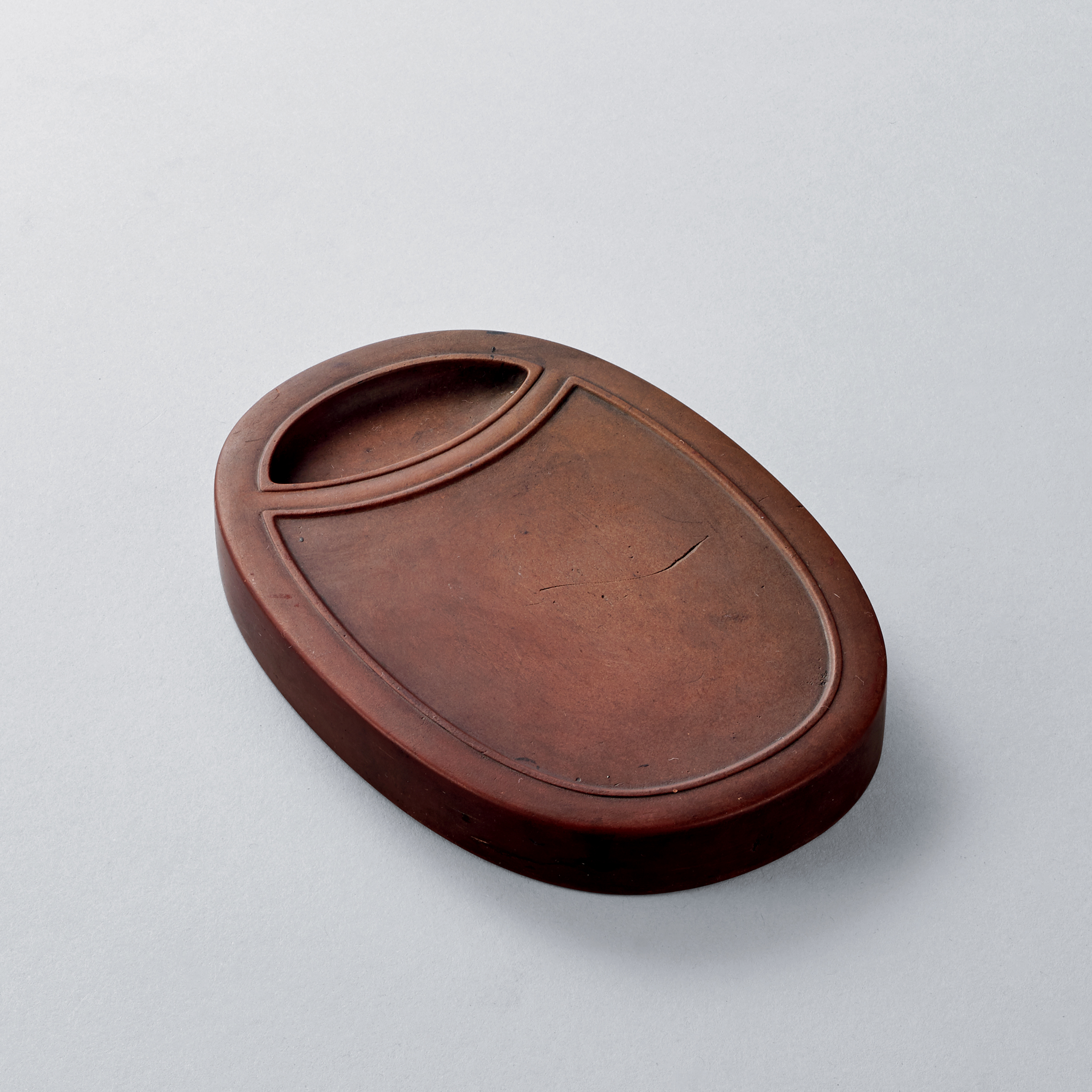 據文獻記載,乾隆四十一年(1776)以後,清廷曾分別以端石、歙石、澄泥大量仿制古硯,用來賞賜宗室大臣,每套六件。有仿漢未央磚海天初月硯、仿漢石渠閣瓦硯、仿唐八棱硯、仿宋徳壽殿犀紋硯、仿宋天成風字硯、仿宋玉兔朝元硯。澄泥之仿古硯取绛縣汾水之泥,運至蘇州、南通等地制作。此砚原配原盒以丢失,颇为可惜。