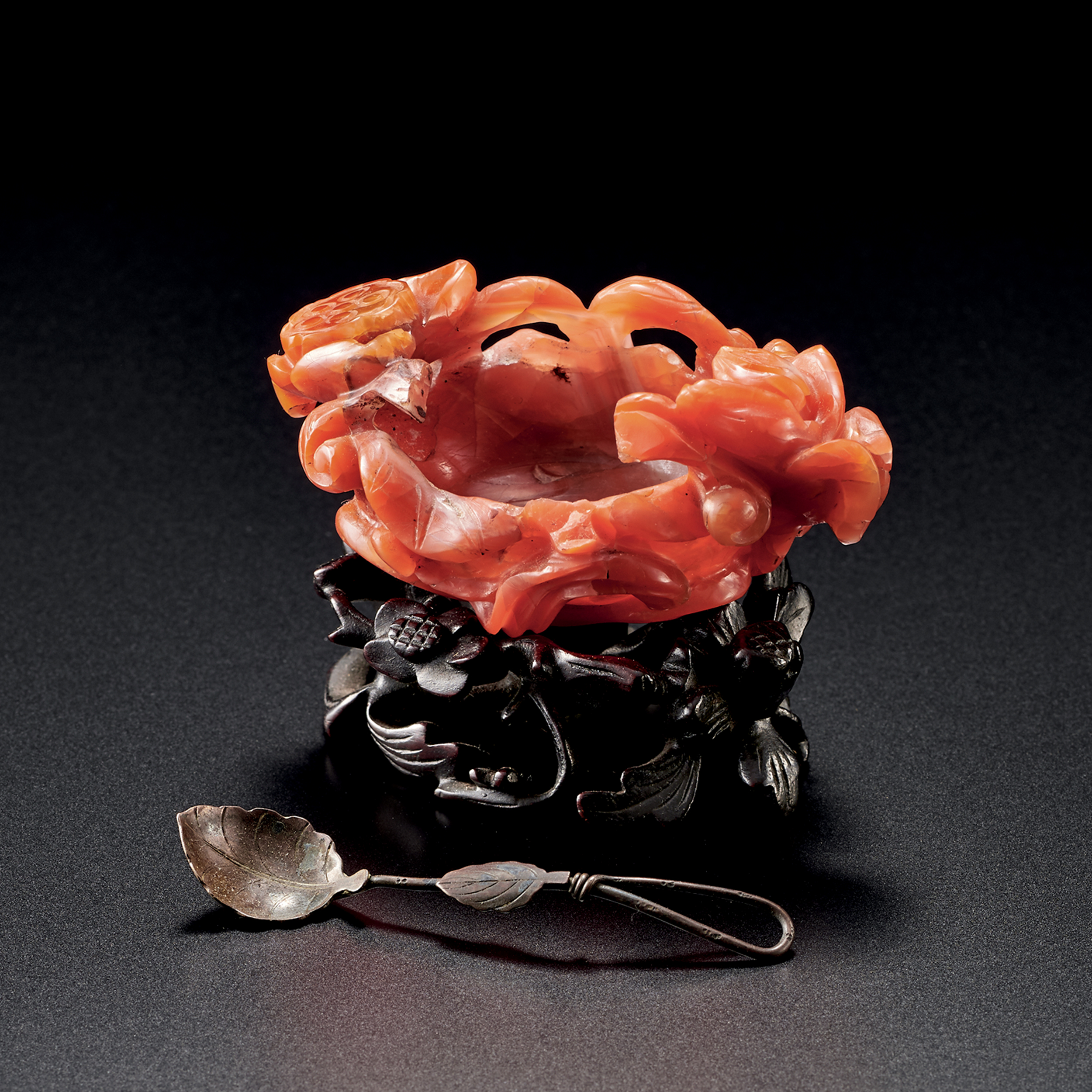 南紅瑪瑙雕荷塘佳趣水盂