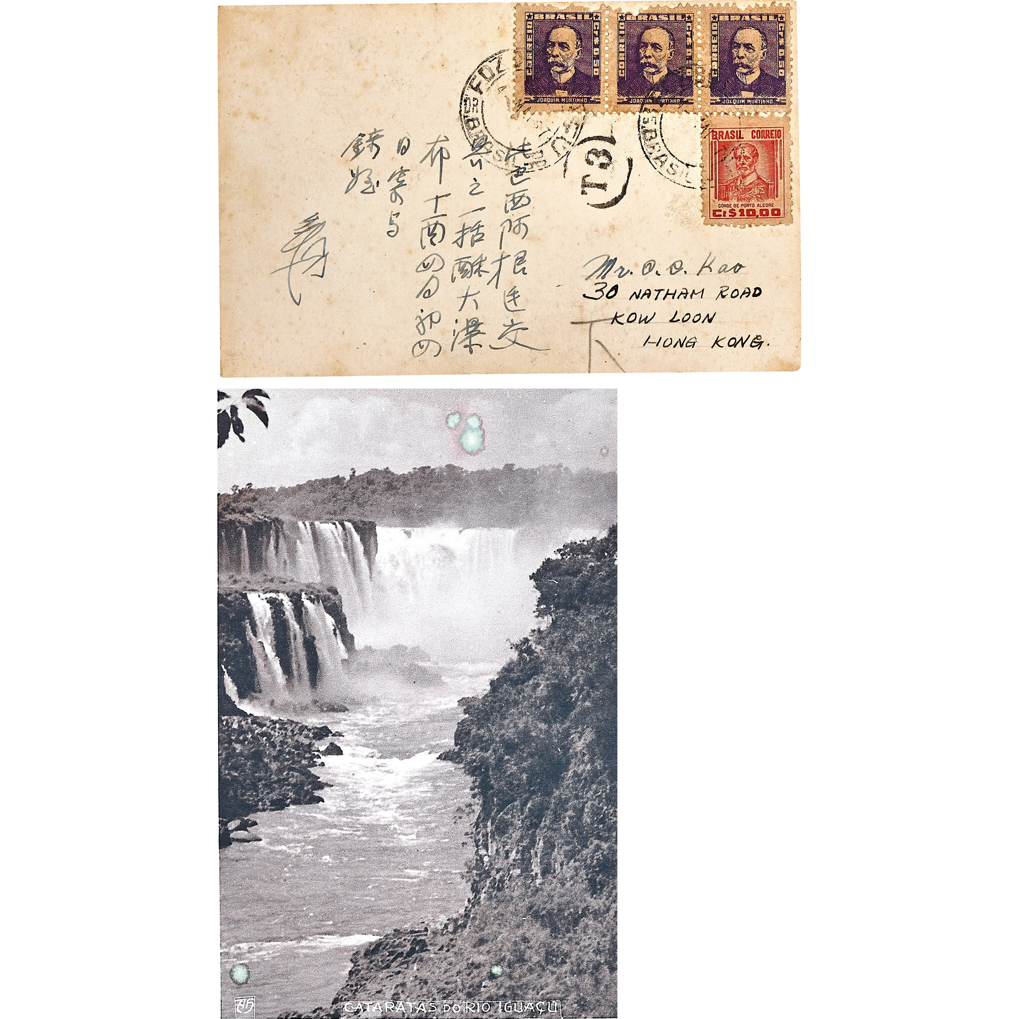 釋 文:此巴西阿根廷交界之一括蘇大瀑布,丁酉四月初四題,寄與錡姪,爰。來 源:「梅雲堂」家族珍藏中國書畫。作者簡介:張大千 名爰,字季爰,號大千居士,四川內江人。無論是繪畫、書法、篆刻、詩詞都無所不通,尤善山水。一生充滿傳奇,如曾赴日學染織,又入寺為僧,並在戰火中遠赴敦煌臨摹壁畫等。後旅居海外,畫風工寫結合,重彩、水墨融為一體,尤其是潑墨與潑彩,開創了新的藝術風格,更被譽為近代繪畫史上一大家。