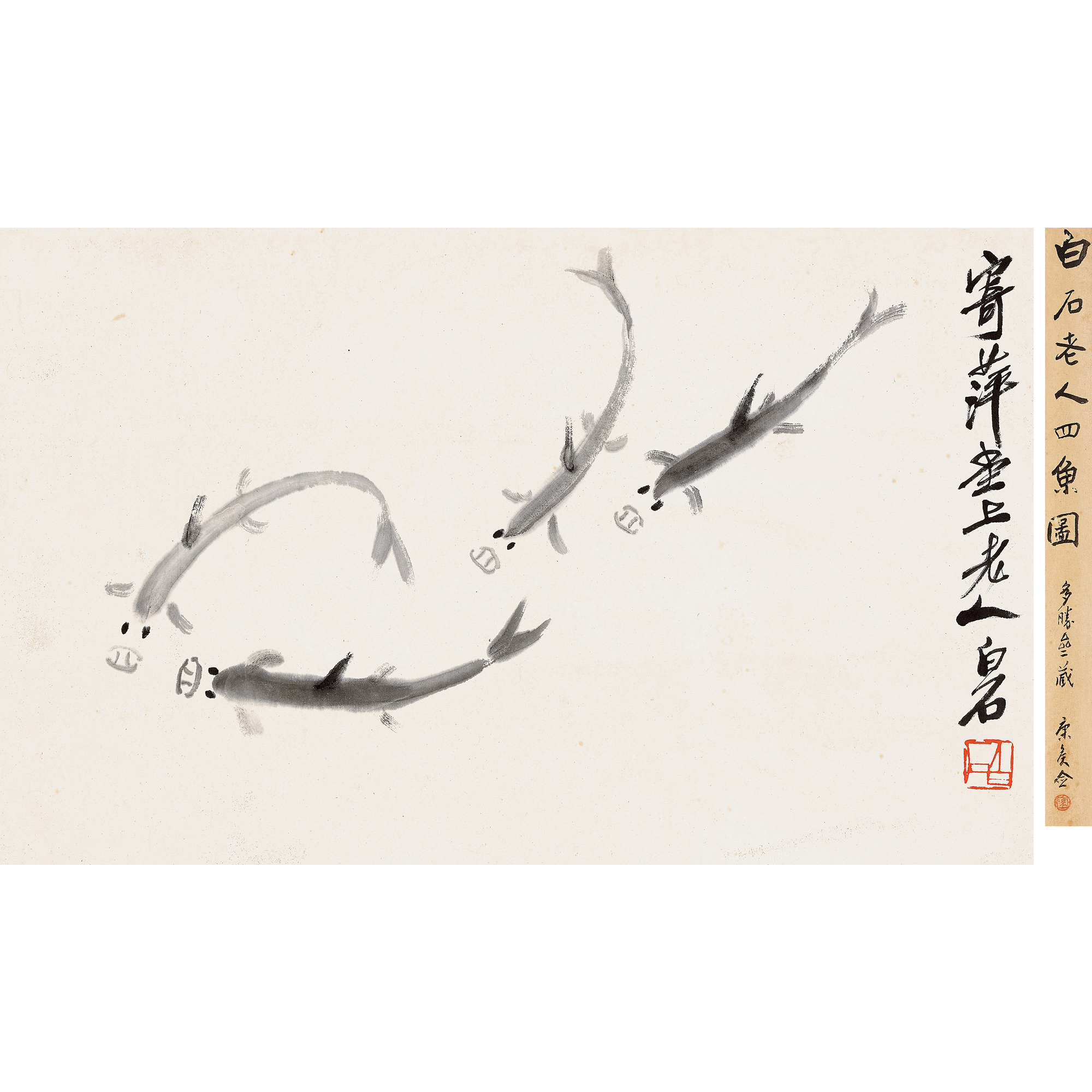 題  簽:白石老人四魚圖。多勝齋藏,康侯僉。鈐印:馮(朱)