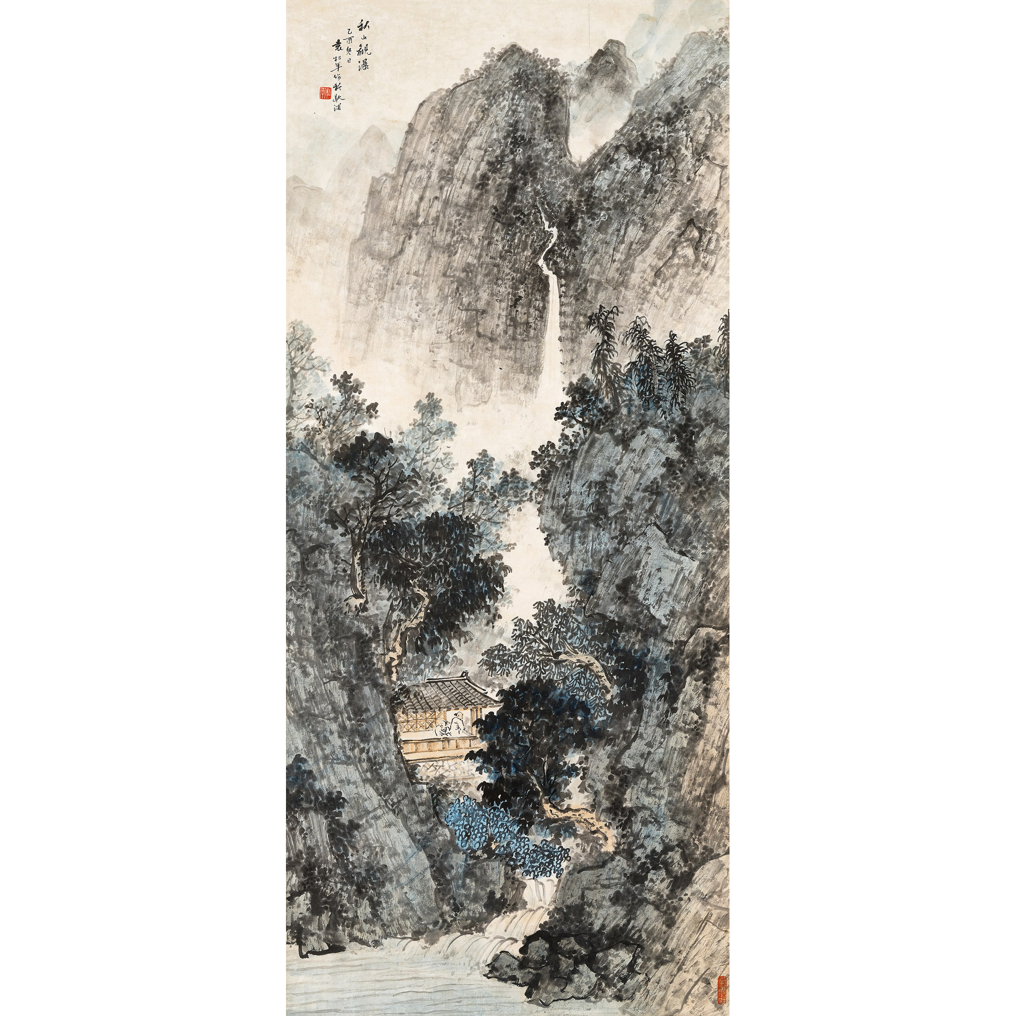 款 識:秋山觀瀑。乙酉冬日,袁松年作於歇浦。