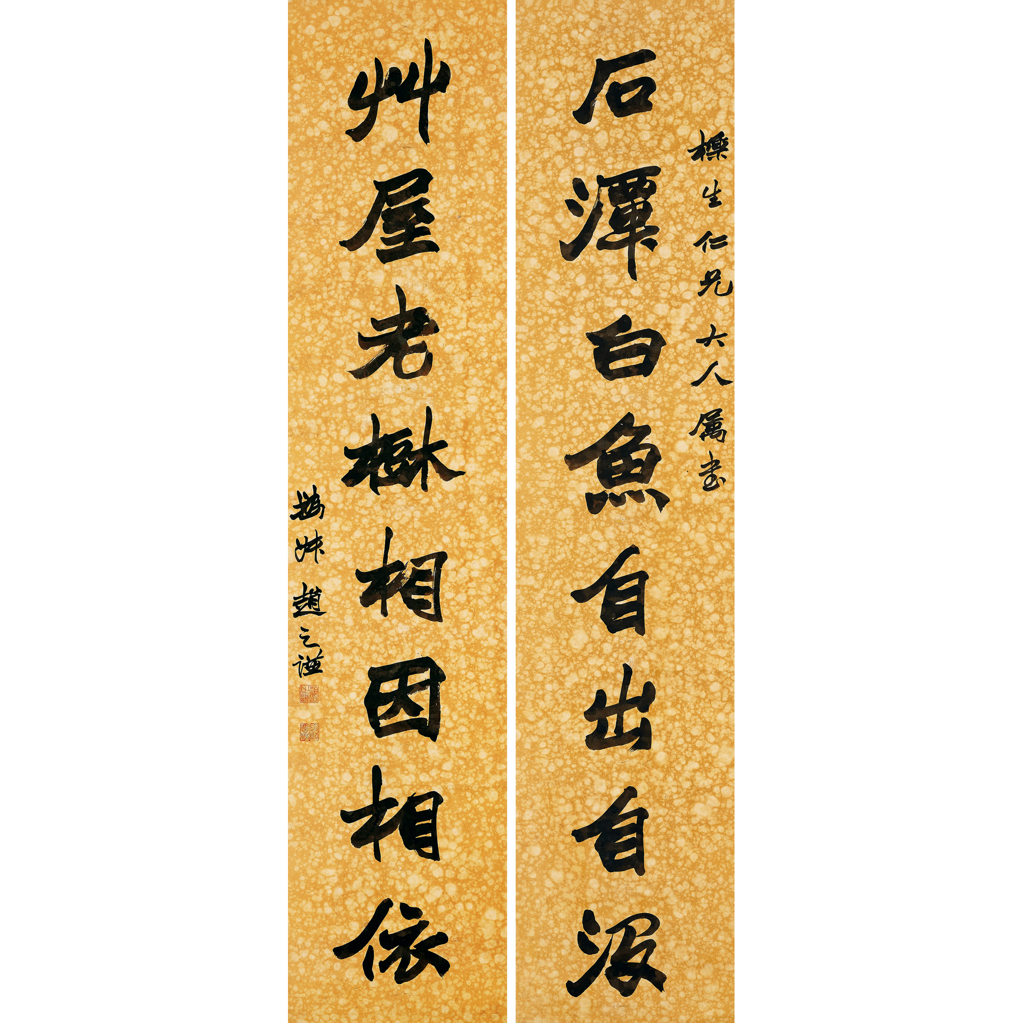 釋 文:石潭白魚自出自沒,草屋老樹相因相依。來 源:「蠖隱小榭」亞洲私人藏家同一收藏注:與《一期一會·聽茶聞香》lot741-lot748,《中國重要瓷器及藝術品》lot801-lot825,為同一來源。作者簡介:趙之謙 初字益甫,號冷君,後改字撝叔,號悲庵、梅庵、無悶等,浙江紹興人。清代著名的書畫家、篆刻家。擅書法,初學顏真卿,篆隸法鄧石如,後自成一格。善繪畫,花卉學石濤而有所變化,為清末寫意花卉之開山。