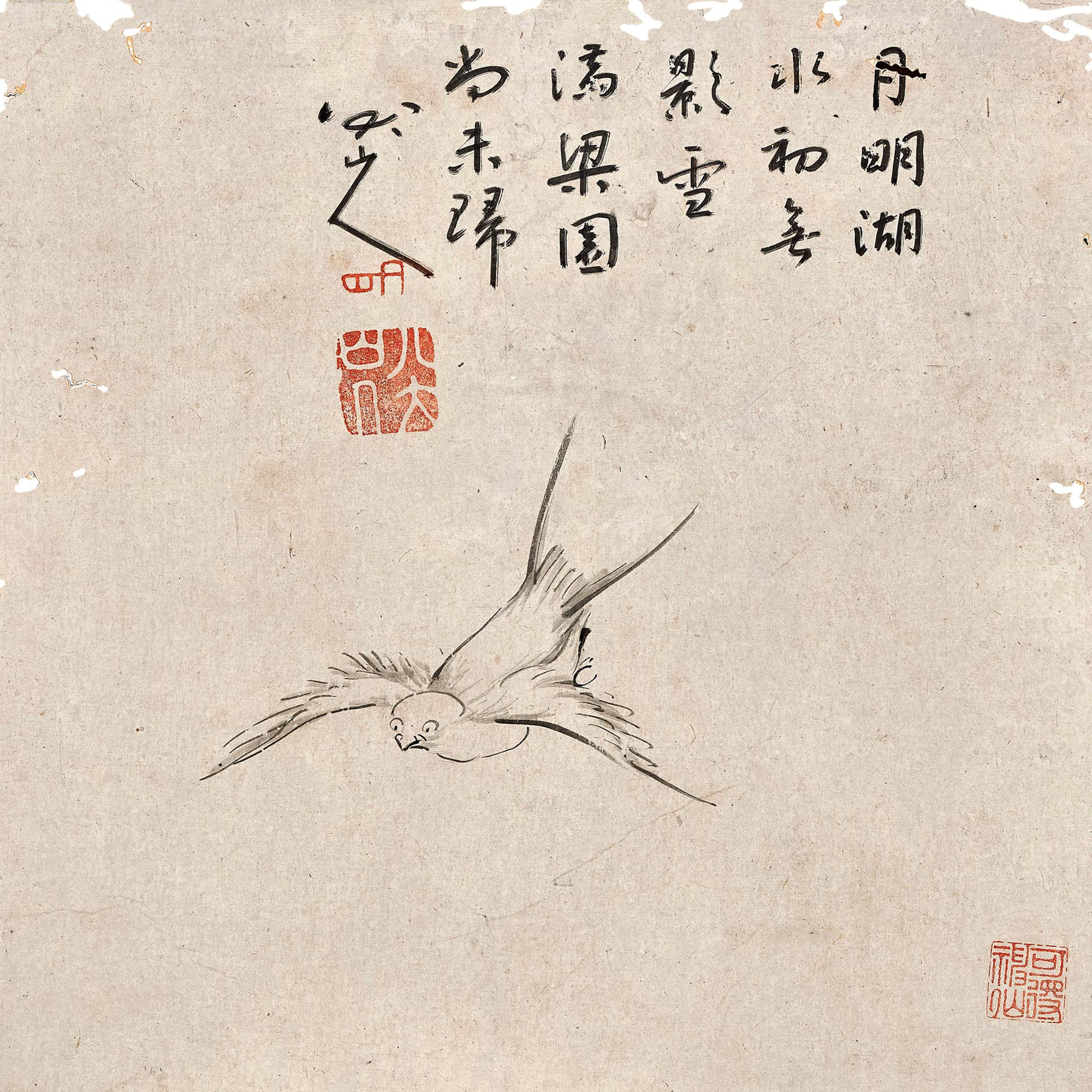 款 識:月明湖水初無影,雪滿梁園尚未歸。八大山人。