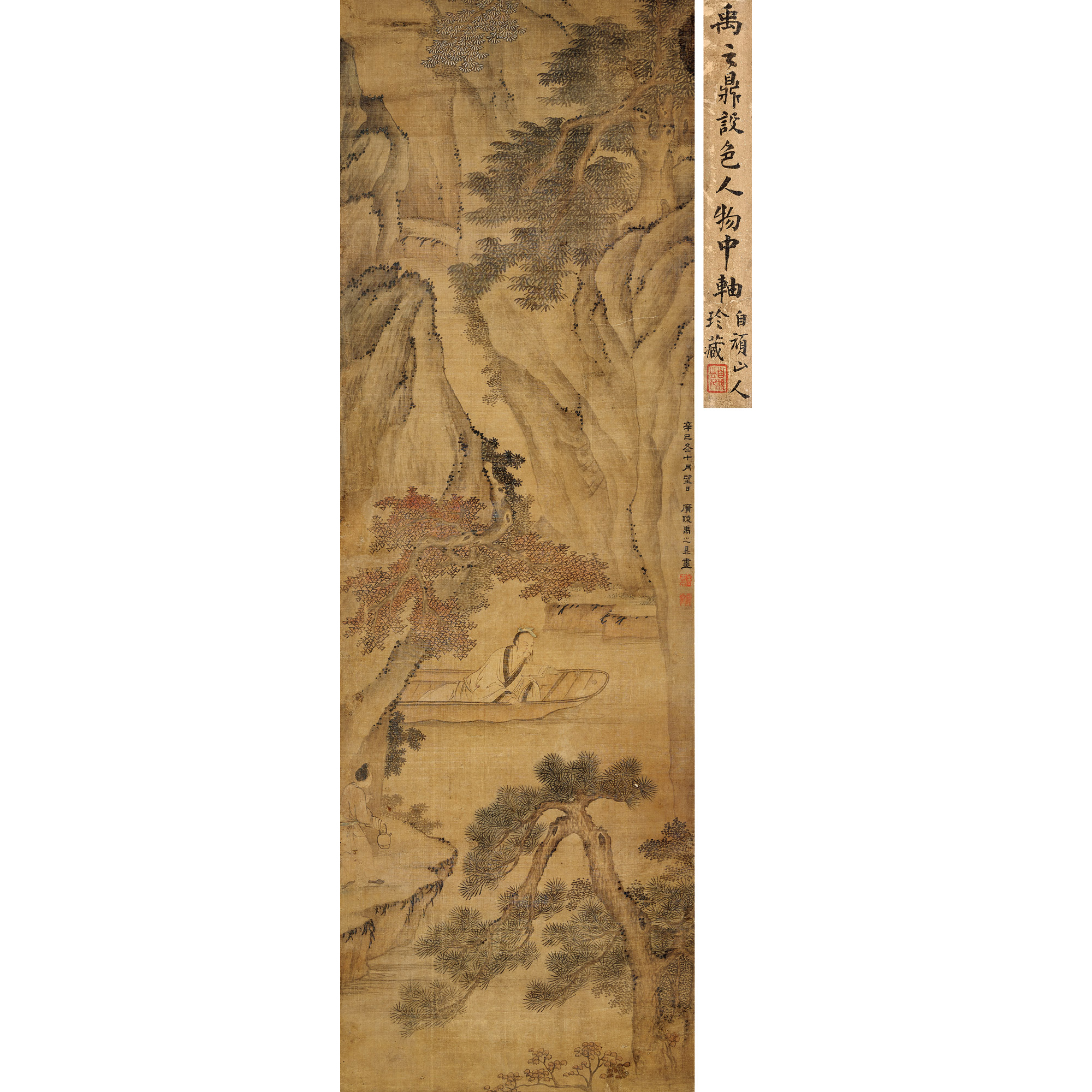 題  簽:禹之鼎設色人物中軸。自頑山人珍藏。鈐印:自頑山人(朱)、歐陽叔弘(白)