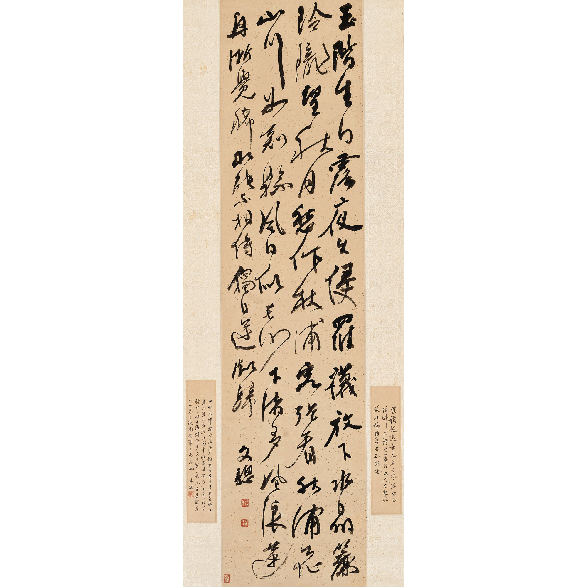 畫:132.6×32.1cm 約3.8平尺;左跋:32×6.5cm 約0.2平尺;右跋:28.2×6.5cm 約0.2平尺