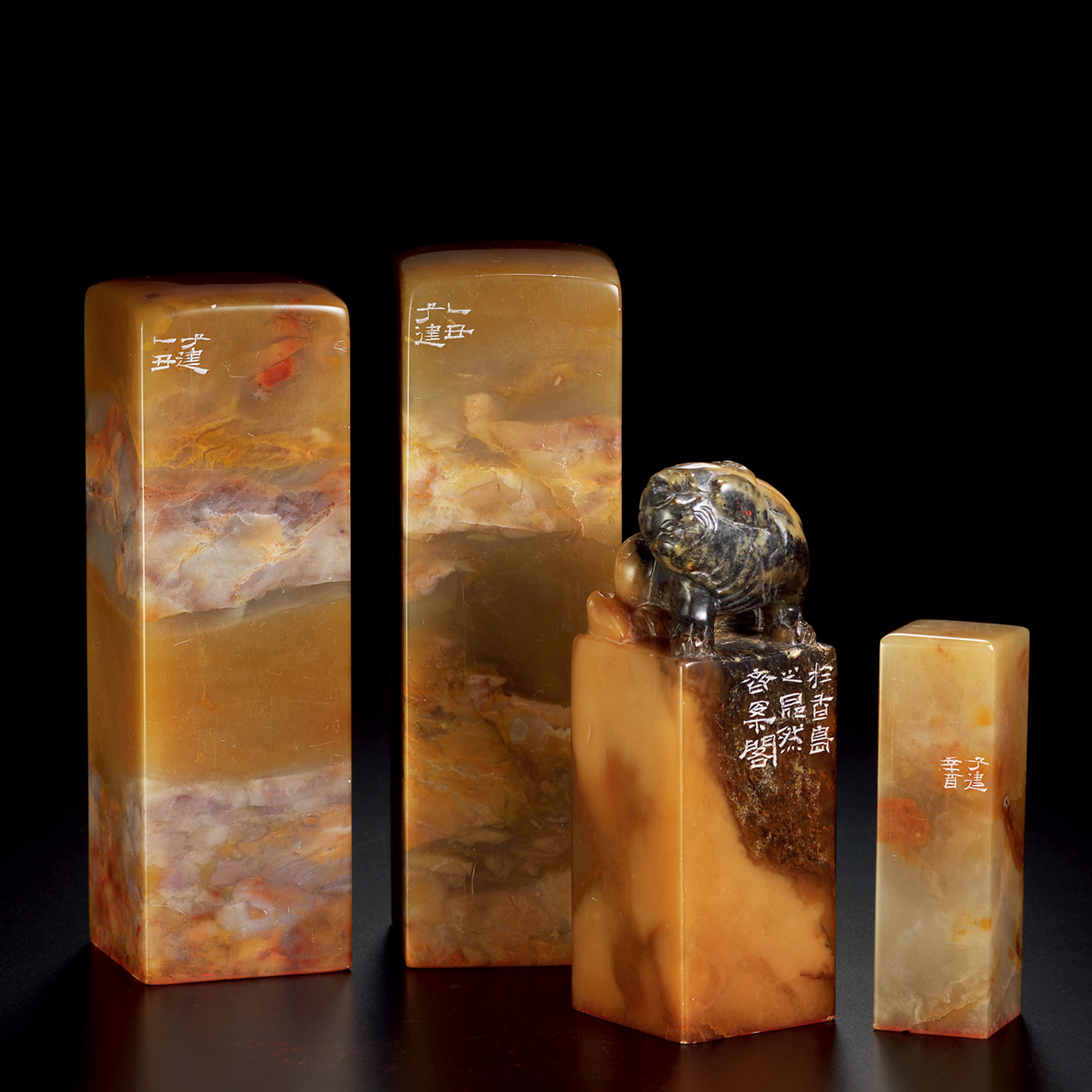 注:與《中國古代書畫》lot563-lot572,《一期一會·聽茶聞香》lot741-lot748,為同一來源。吳子建(1947-),當代金石名家,名建,室名長屋、從因樓,福建福州人,生于上海。1978年移居香港,1987年移居美國。童年時,吳湖帆先生導之親筆研,及長,問業于張伯駒、葉恭卓、王世襄、容庚、顧廷龍、沈尹默、潘伯鷹、謝稚柳、陳佩秋、錢廋鐵、來楚生、方介堪、方去疾、陳巨來、王壯弘等。1971~1990年間曾爲謝稚柳制印一百余方。
